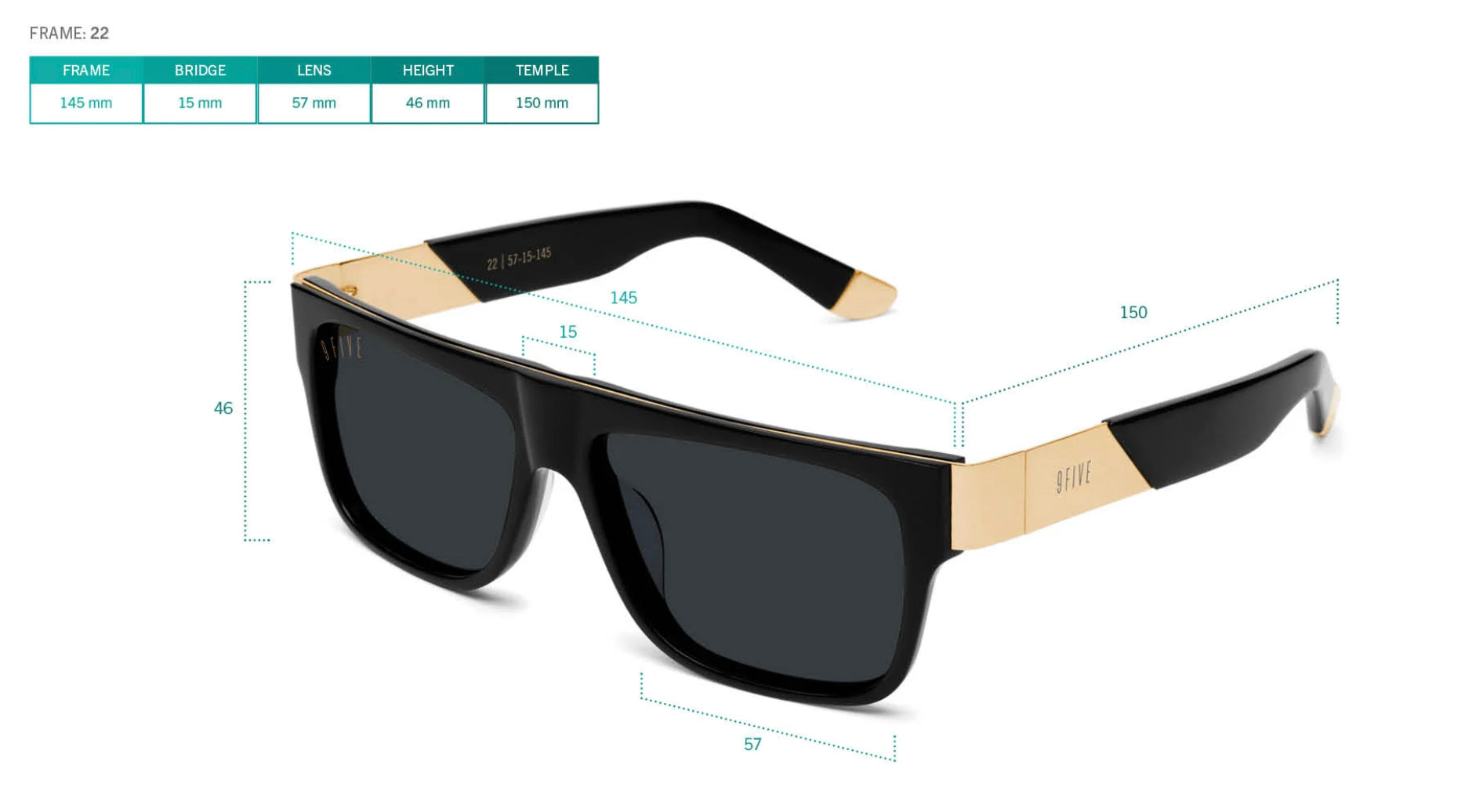 - 9FIVE Signature logo laser etched on outer right and left temples