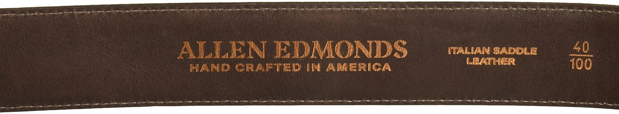 This leather lined stitched edge belt has a polished nickel buckle with single keeper, perfed detail along the edge and is 1 3/8 -inch wide. Size Guide : Our belts are measured from the inside edge of the buckle to the center hole. Because of this, we recommend selecting a belt one full size larger than your waist size. For example, if the waist size on your slacks or pant size is a 36 inches we recommend ordering a 38 inches belt Founded in 1922, Allen-Edmonds Shoe Corporation manufactures premium men's footwear, accessories, and cedar products using the philosophy of quality, service and integrity.