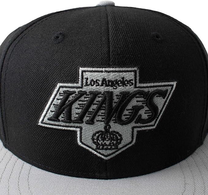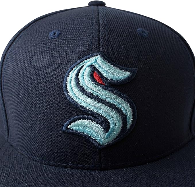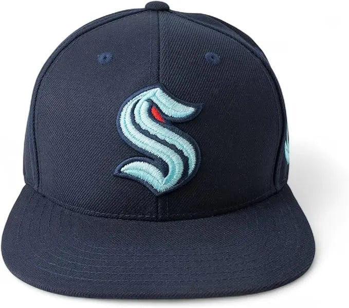 Wool blend crown and flat visor, lofted embroidery, classic plastic snapback closure.
