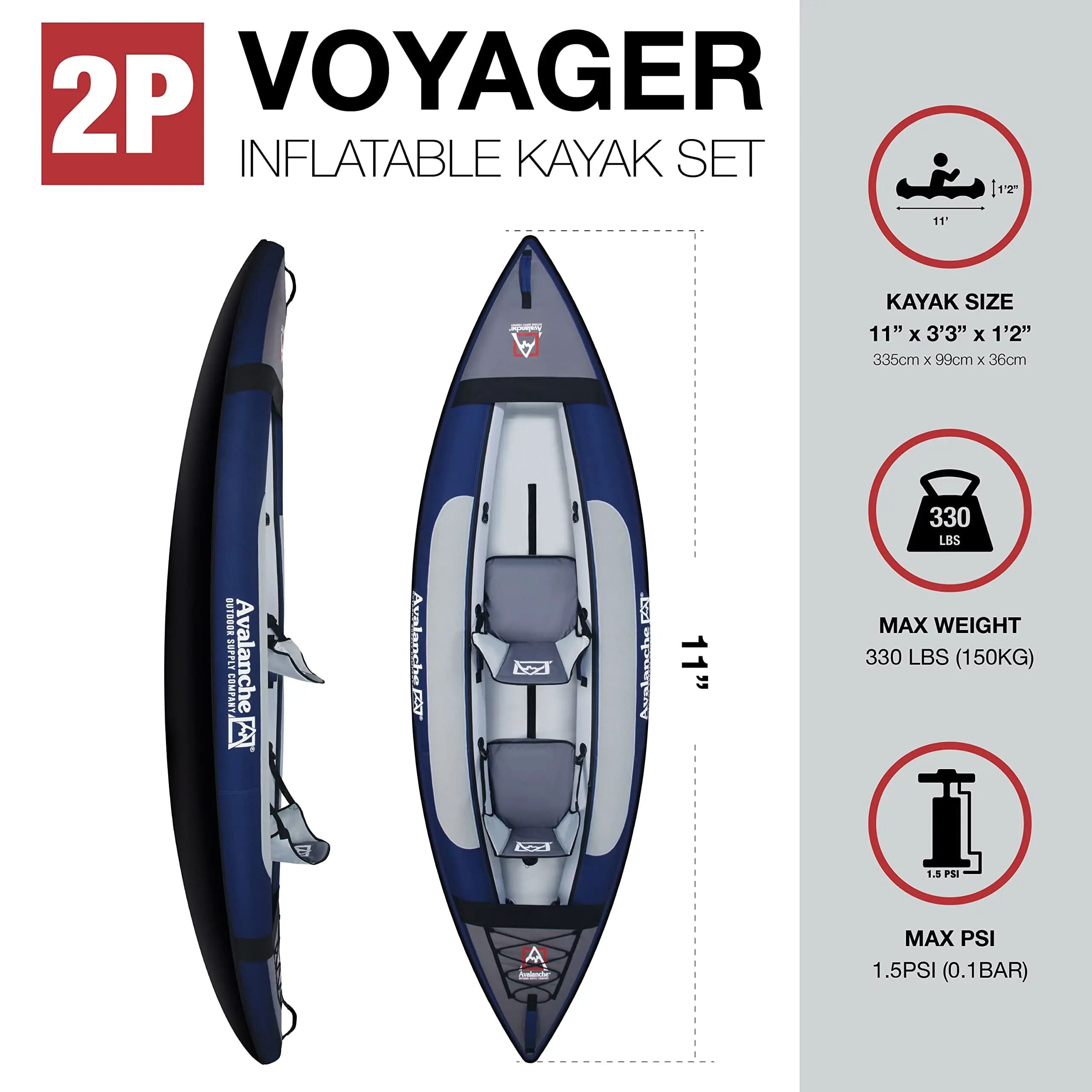 Get ready to hit the waters with the Avalanche 2 Person Voyager Inflatable Kayak, equipped with everything you need to get started today.