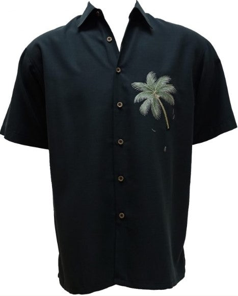 New back embroidery of our original artwork featuring four palm trees with one of the palm trees tearing out from the front of the shirt. Embroidered on the front in such a way to give it a tearing out of shirt look. Comfortable sides vents and 2 back pleats to keep you comfortable and relaxed to continue enjoying life. For best results, machine wash cold inside out and tumble dry low.