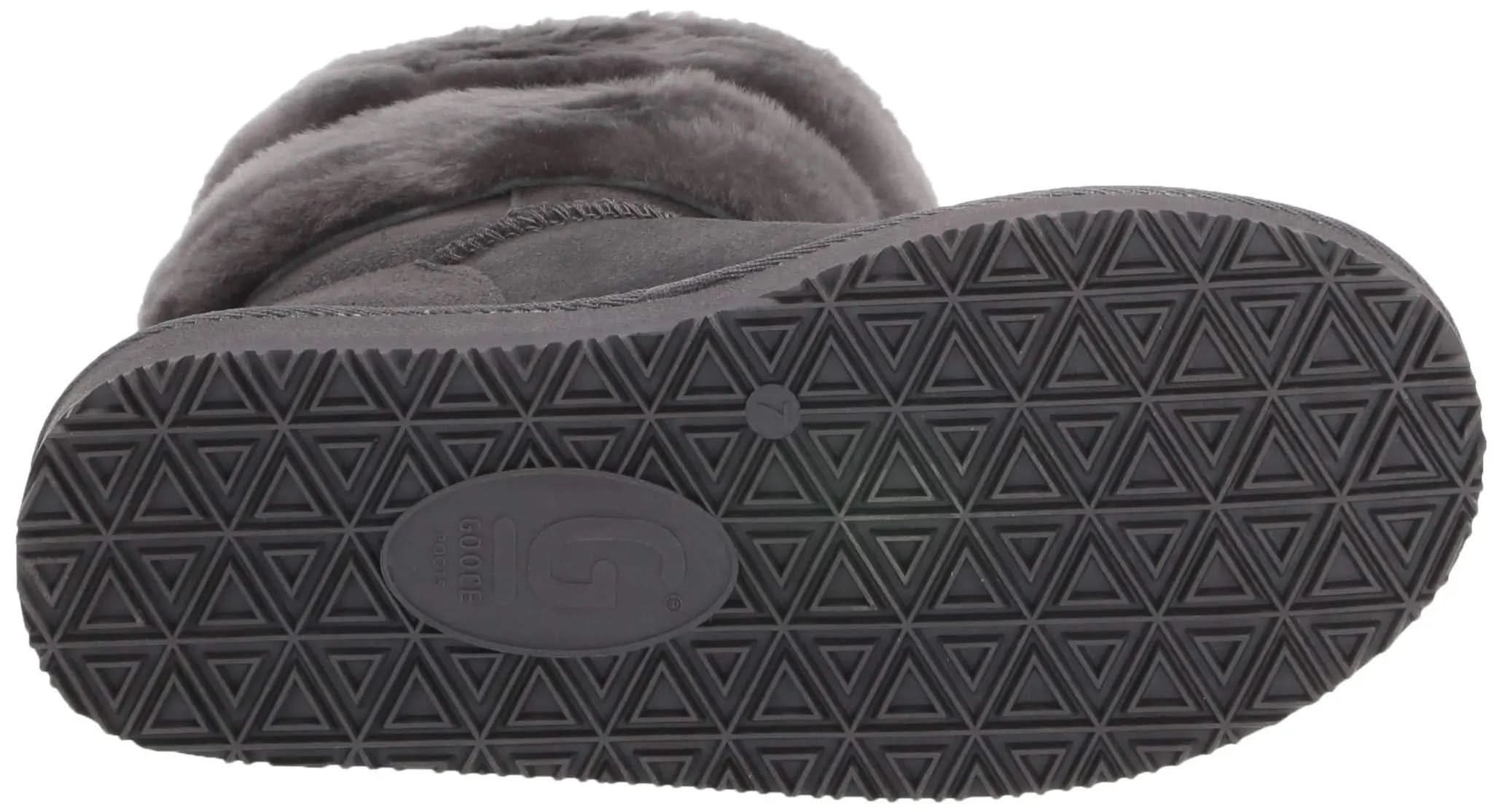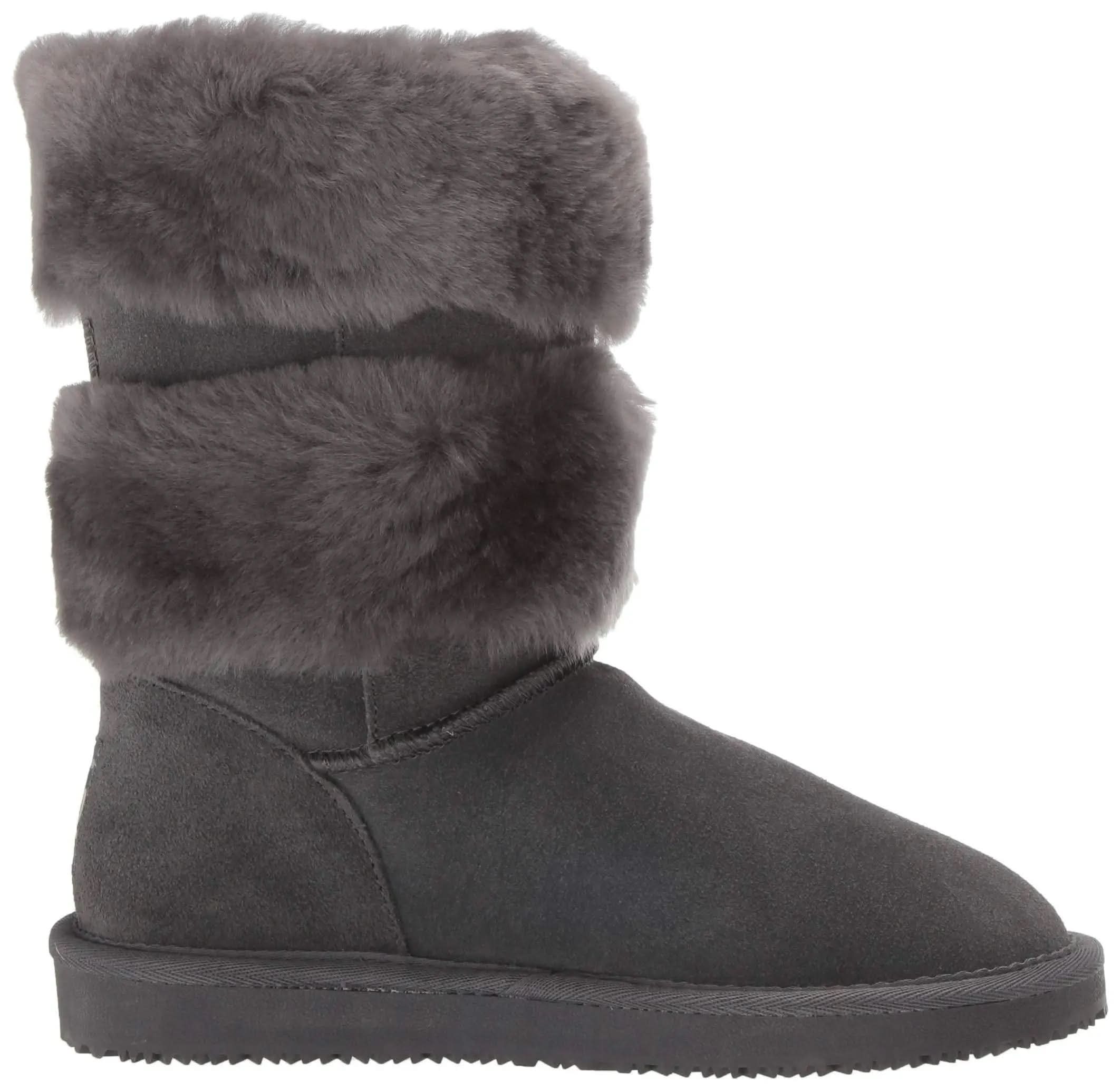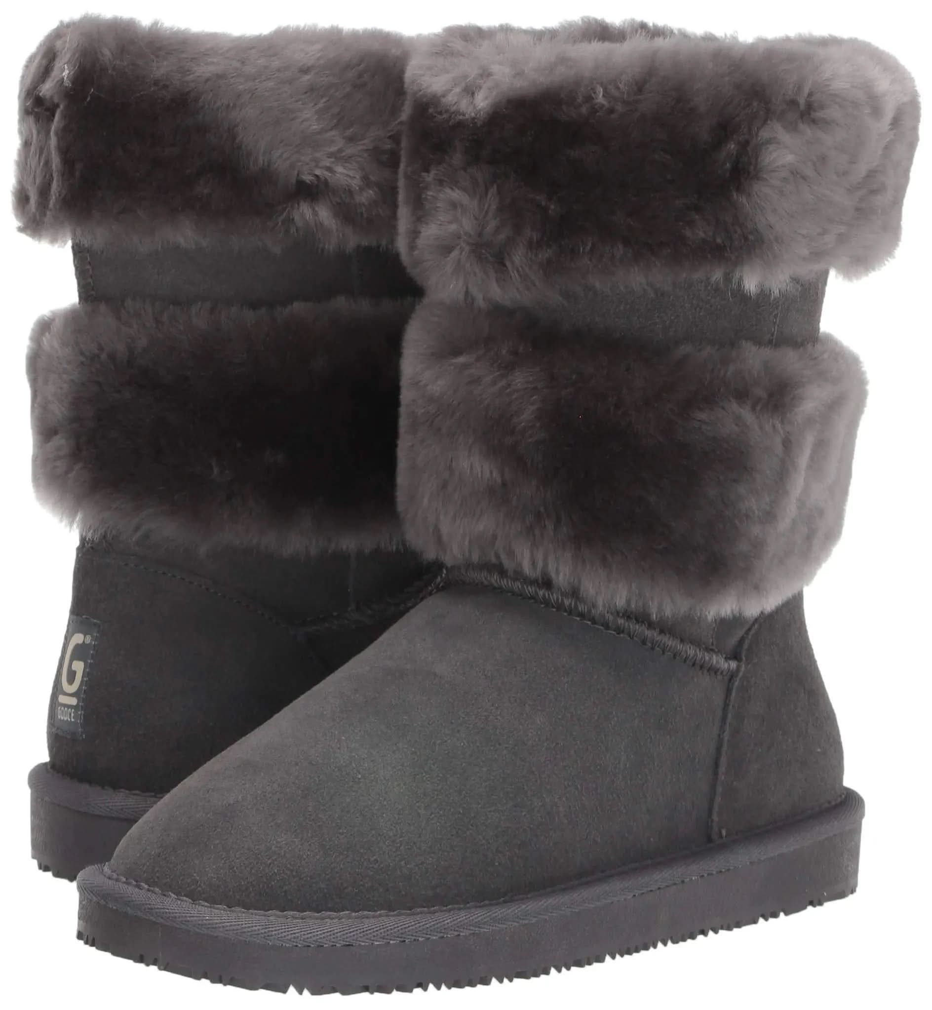 100% suede upper, 3 fashion rings of shearling around the boot, shearling