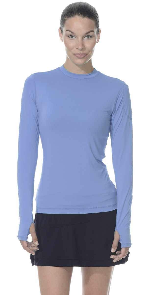 24/7 long sleeve crew neck, hand coverage and functional pocket. Quick dry, Shrink Resistant, Moisture Wicking, Machine wash cold, UV protection does not wash away with launderings.