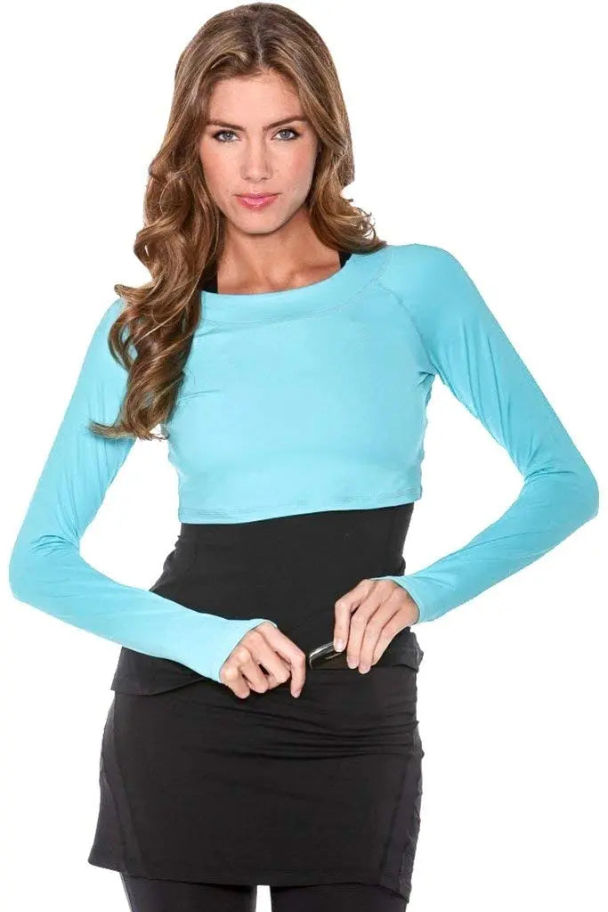 Reach for the BloqUV UPF crop shirt when you want sun protection for your arms and shoulders without adding bulk. This midriff top was designed to be worn over your favorite tank, sun dress or swimsuit to provide superior SPF sun protection while keeping cool. Perfect for activities on and off the water: running, biking, swimming, paddle boarding, fishing, tennis, golf and sight-seeing. Enjoy your multi-use capri sun shirt for any activity.