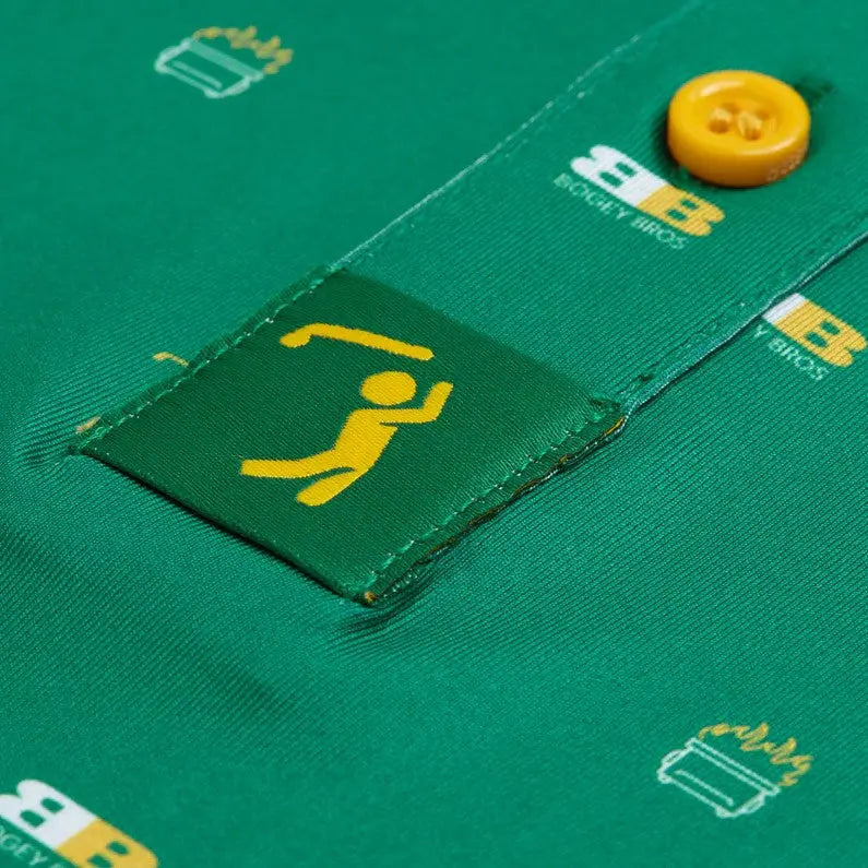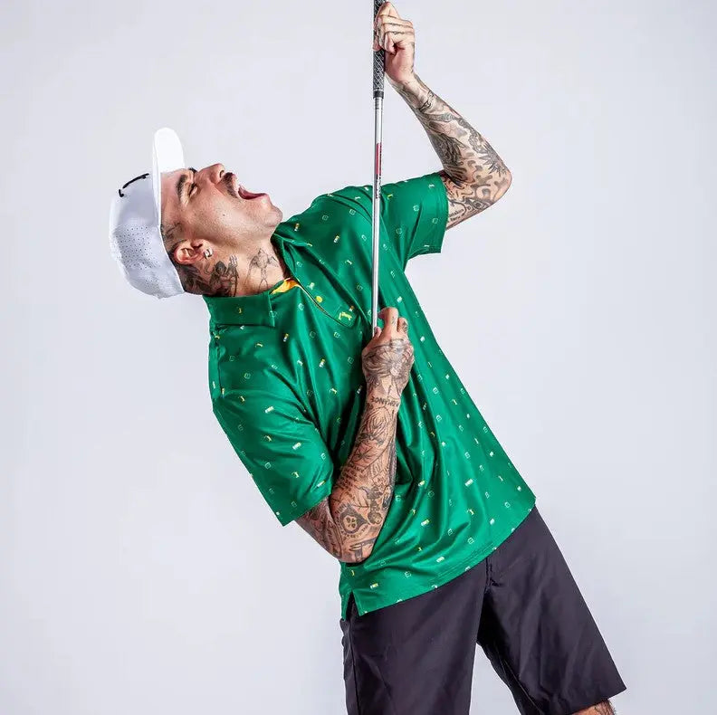 Bogey Bros Men's 4 Way Stretch Short Sleeve Golf Polo Shirt (Mixed, Dumpster Fire - Green)