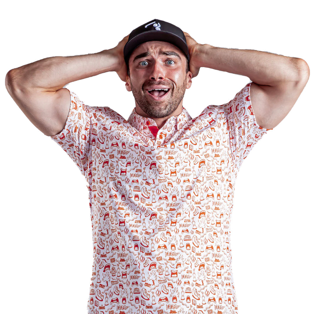 • STAY COOL, FRESH & ON TOP FORM, ALL GAME LONG! Unlike thicker, heavyweight golf shirts for men, our novelty golf polos are lightweight, breathable keeping you dry & comfortable in even the hottest, humid game conditions!