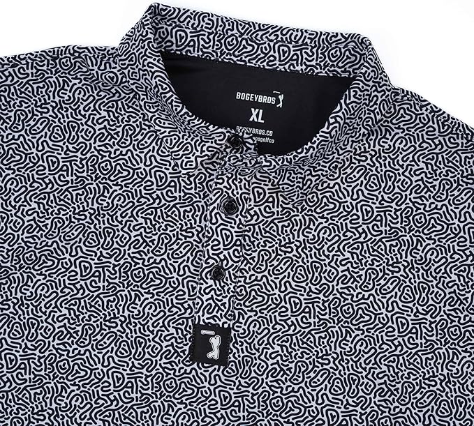 Bogey Bros Men's 4 Way Stretch Short Sleeve Golf Polo Shirt (Mixed, Hidden Words)