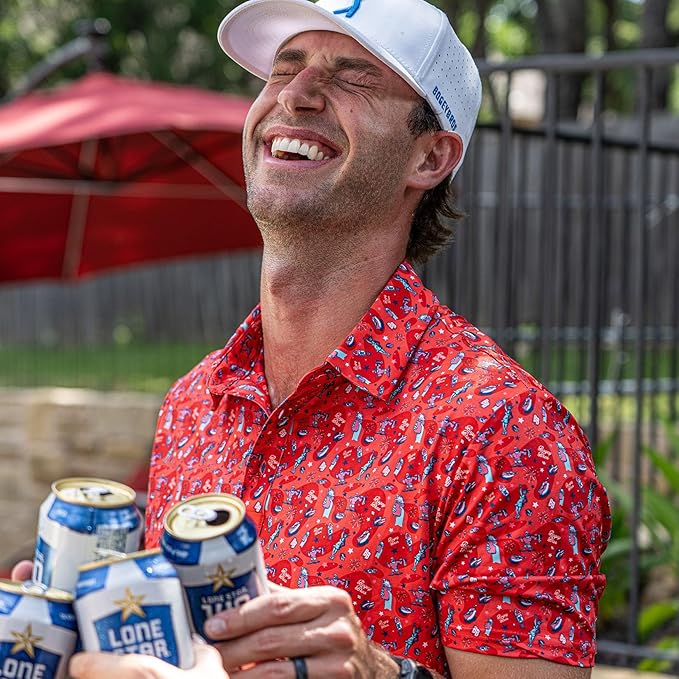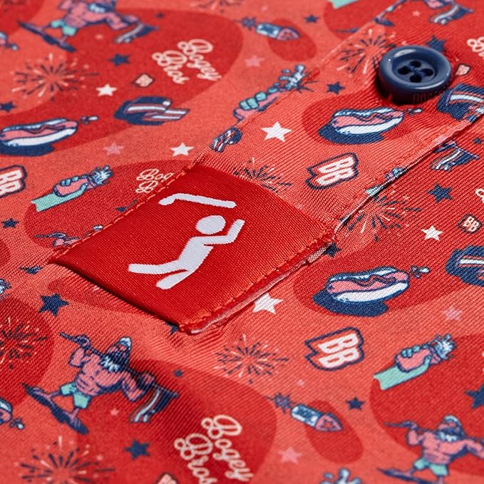 Bogey Bros Men's 4 Way Stretch Short Sleeve Golf Polo Shirt (Mixed, Leggy Liberty)