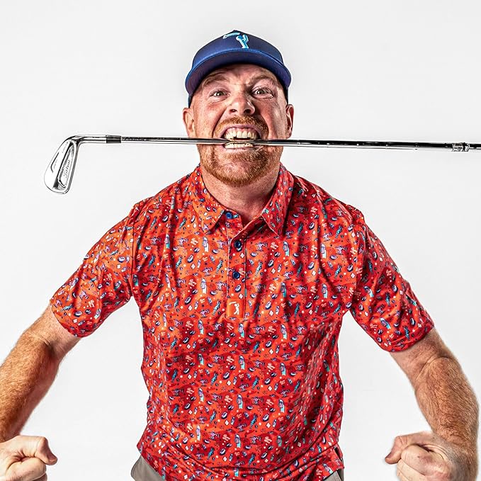 • STAY COOL, FRESH & ON TOP FORM, ALL GAME LONG! Unlike thicker, heavyweight golf shirts for men, our novelty golf polos are lightweight, breathable keeping you dry & comfortable in even the hottest, humid game conditions!