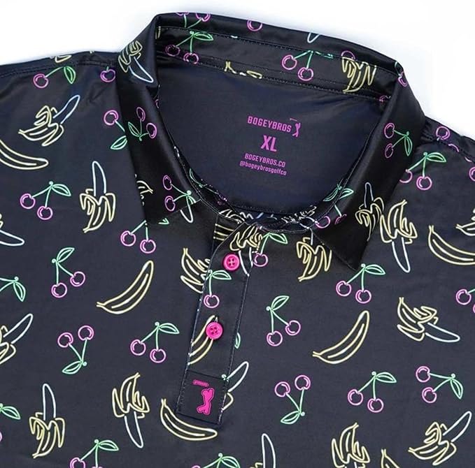 Bogey Bros Men's 4 Way Stretch Short Sleeve Golf Polo Shirt (Mixed, Low Hanging Fruit)