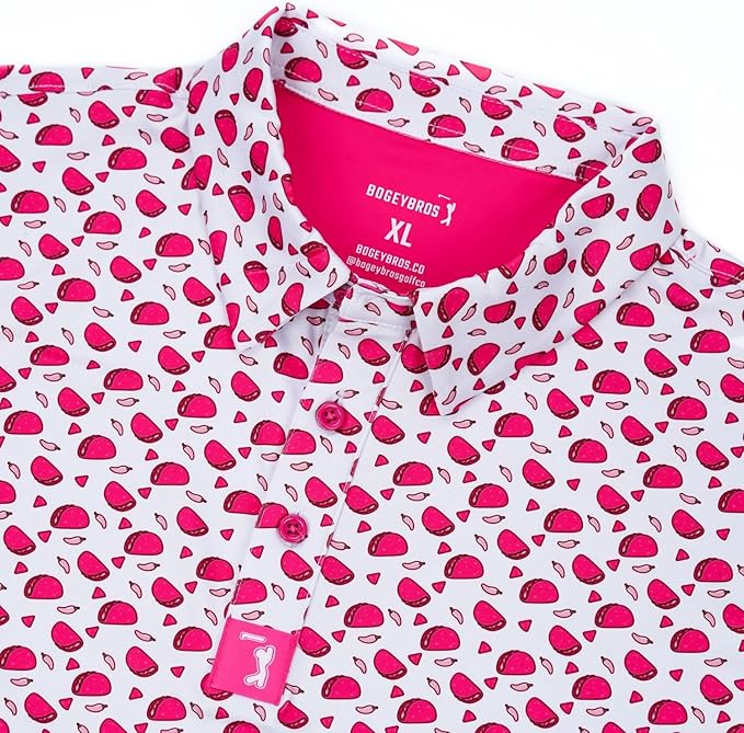 Bogey Bros Men's 4 Way Stretch Short Sleeve Golf Polo Shirt (Mixed, Pink Taco)