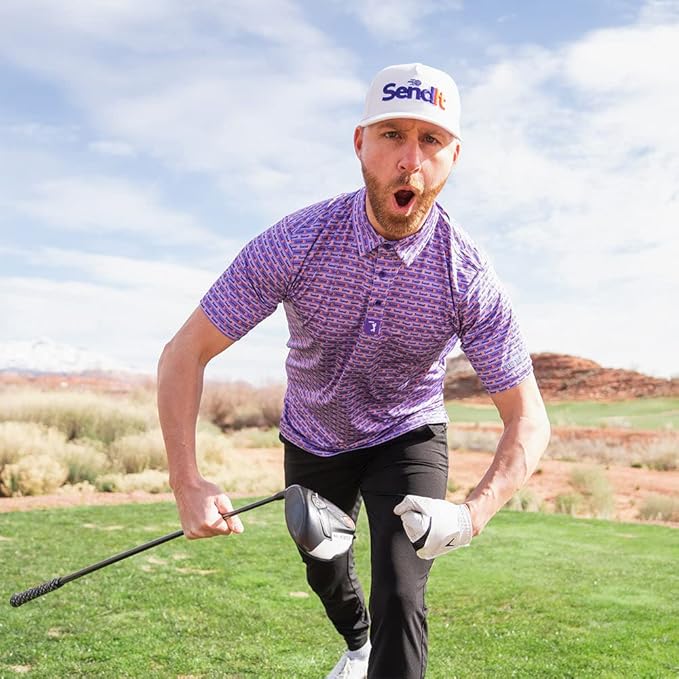 Bogey Bros Men's 4 Way Stretch Short Sleeve Golf Polo Shirt (Mixed, Send It)