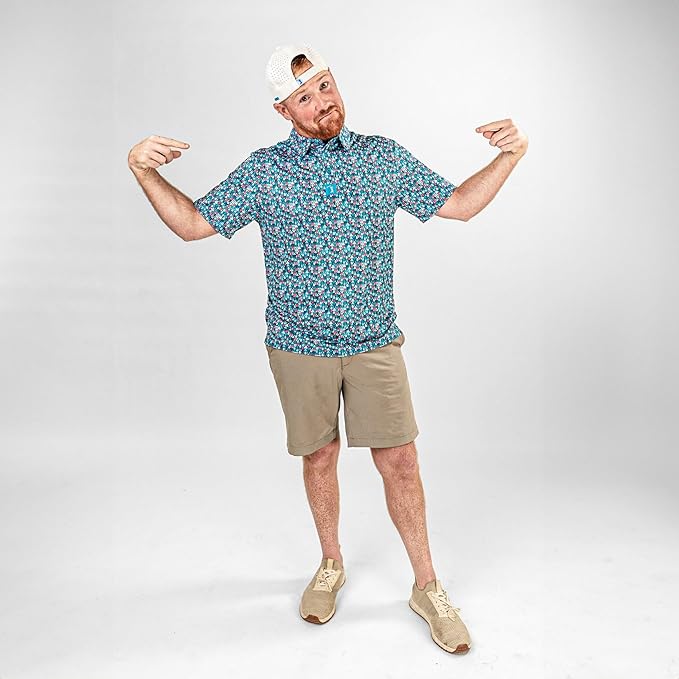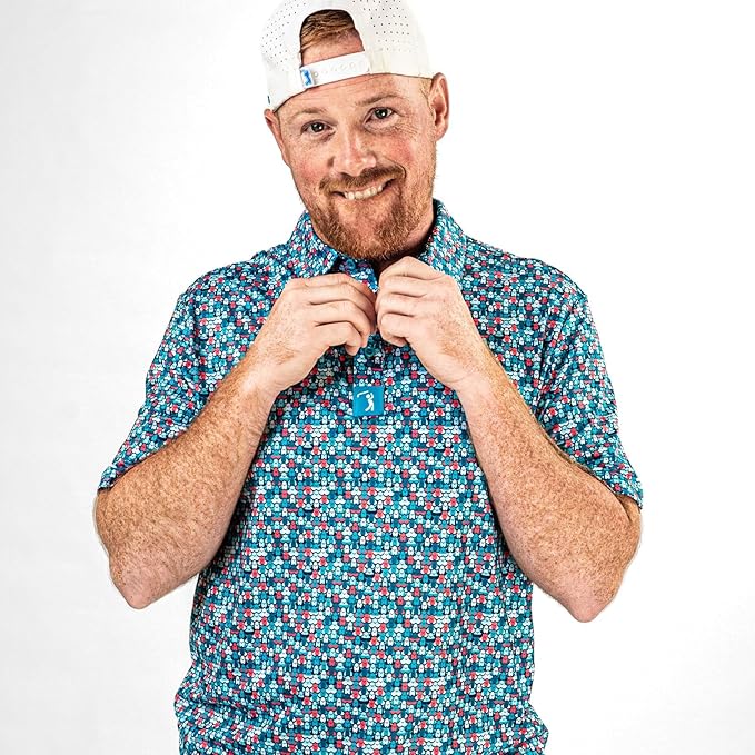 - STAY COOL, FRESH & ON TOP FORM, ALL GAME LONG! Unlike thicker, heavyweight golf shirts for men, our novelty golf polos are lightweight, breathable keeping you dry & comfortable in even the hottest, humid game conditions!