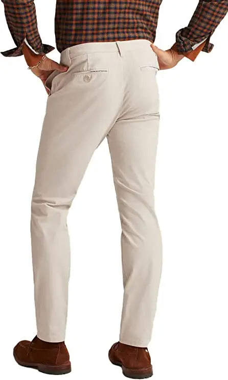 Customer Returned Used. The best chino ever, updated with non-iron, 4-way stretch cotton & a secure zip pocket. A bit of stretch eases the slim fit of versatile flat-front chinos tailored with a modern, straight-leg profile. Contrast lining peeking from the back pockets adds an unexpected touch of color.