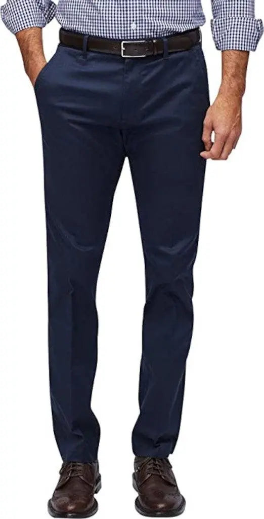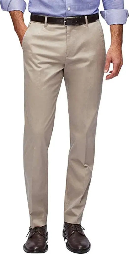 A sharp look for any day of the week, these flat-front pants are made from soft, easy-care stretch fabric and cut for a trim (but not tight) fit. Wrinkle-resistant, easy-care cotton that simplifies your work day.