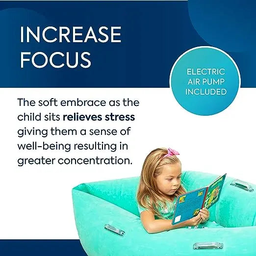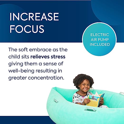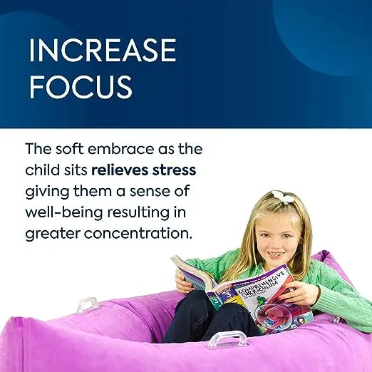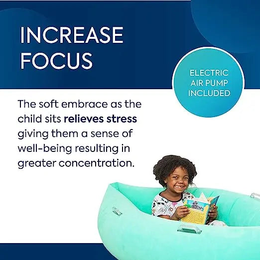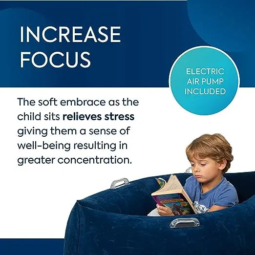 - Increase Focus: Similar to a sensory pillow, the soft embrace of the inflatable lounge chair relieves stress, giving kids a sense of well-being, resulting in greater concentration when reading, working, and more. They’ll love relaxing in the comfy pod!