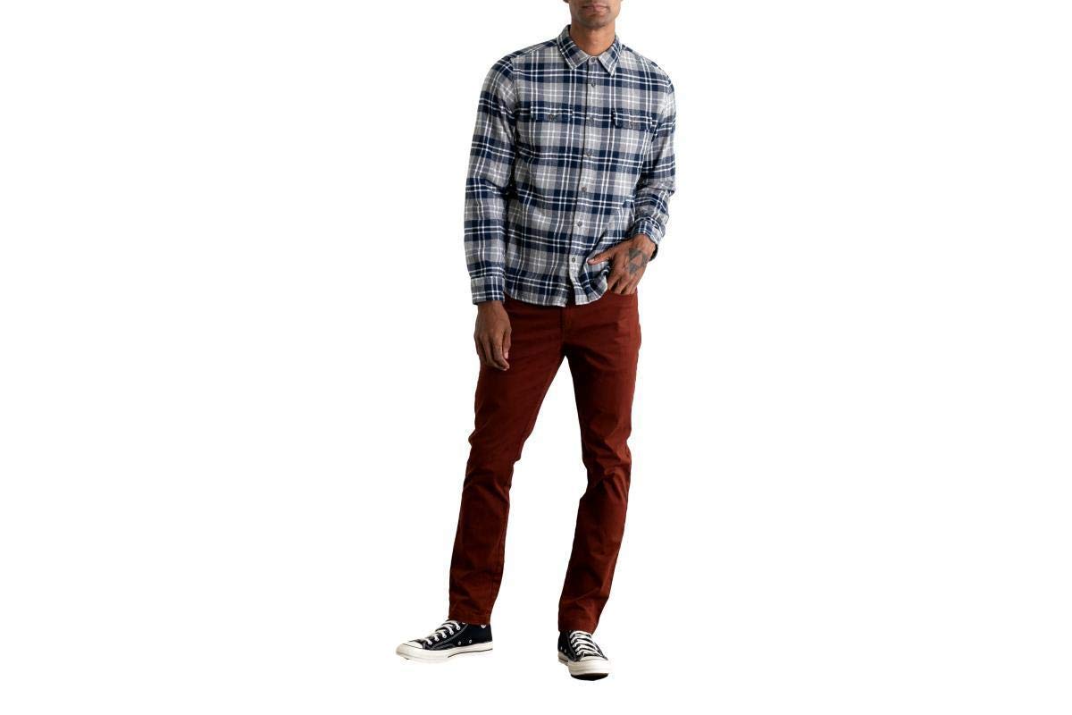 Practical and handsome, this original slim-fit button up fits like a classic men's flannel shirt and looks equally great on its own or worn casually unbuttoned over a tee. This season's version has a slimmer fit through the hem. The Navy-Grey Plaid colorway is constructed from a cotton flannel and has two button-flap chest pockets for stashing your phone.