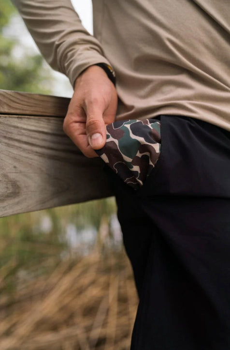 Burlebo Men's 5.5" Inseam Everyday Shorts (Matte Black - Throwback Camo)