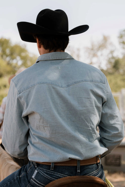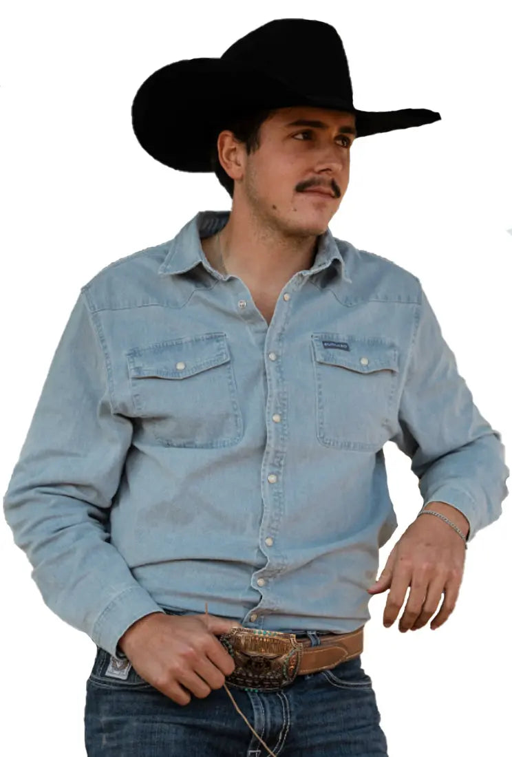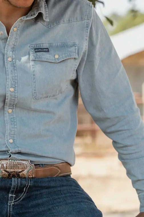 This denim pearl snap shirt is crafted from a durable blend of 99% cotton and 1% spandex, making it both comfortable and flexible. The versatile midweight fabric is brushed for extra comfort and washed for incredible softness. Designed to look great untucked, this shirt features front pockets with button closure for added style. Perfect for casual days or dressed up, this denim pearl snap shirt is a wardrobe staple.