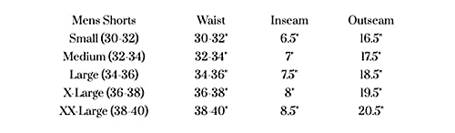 Running Inseam: Small (6 Inch) Medium (6.5 Inch) Large (7 Inch) XL (7.5 Inch) XXL (8 Inch)