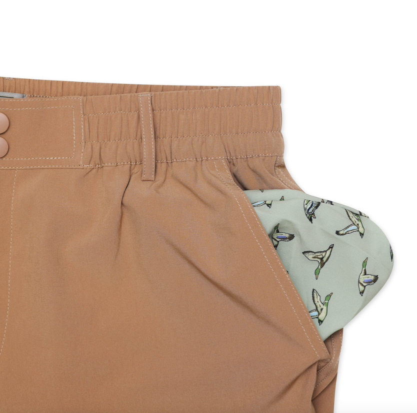 Burlebo Men's Everyday Shorts (Desert Tan - Flying Duck Green)