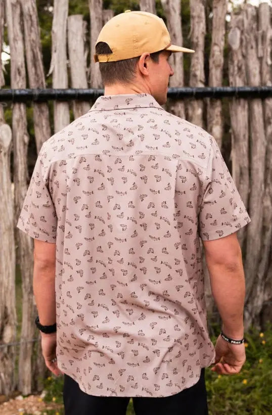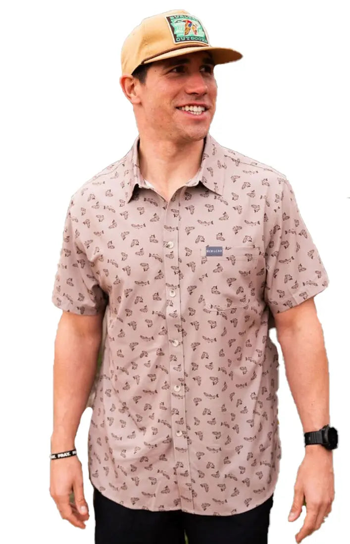 Burlebo Men's Performance Short Sleeve Button Up Shirt (All Over Fish)