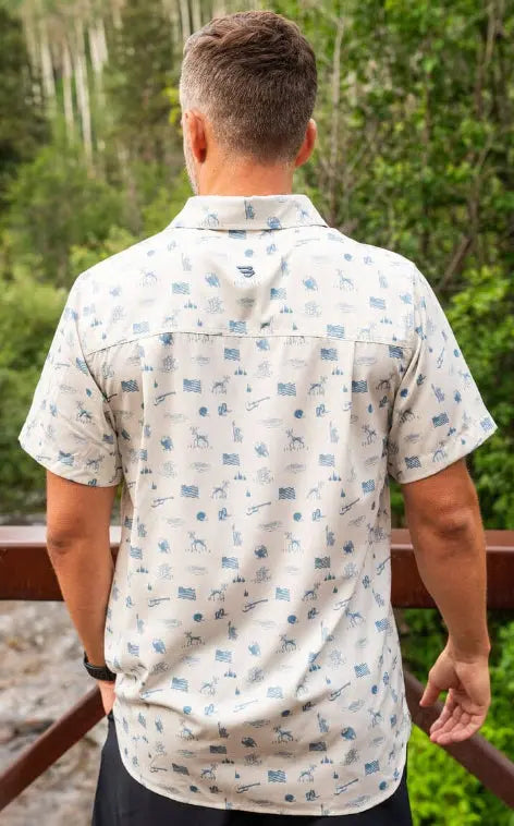 Burlebo Men's Performance Short Sleeve Button Up Shirt (America The Great)