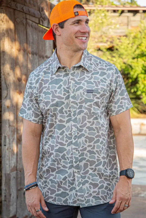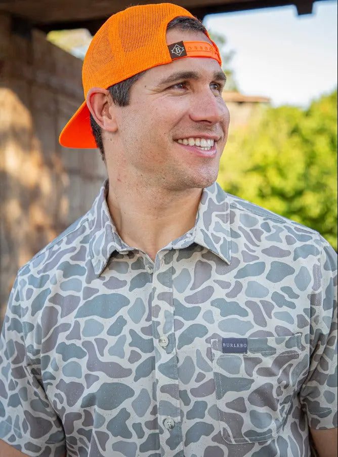 Burlebo Men's Performance Short Sleeve Button Up Shirt (Classic Deer Camo)
