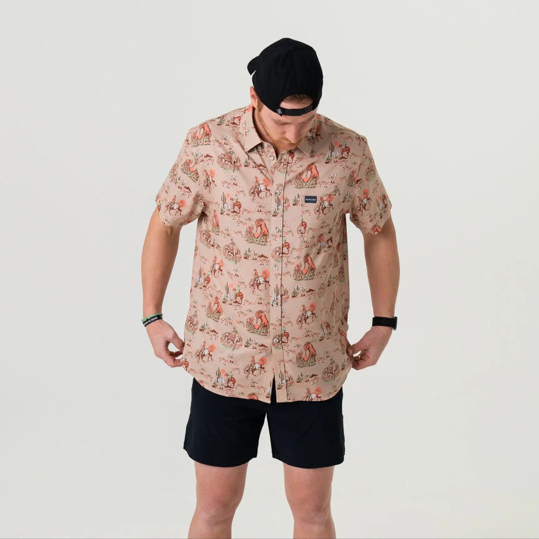Burlebo Men's Performance Short Sleeve Button Up Shirt (Cowboy Up)