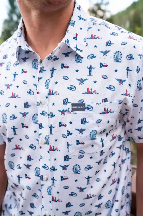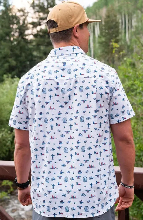 Beat the heat in effortless style with the Short Sleeve Shirt (Dallas) — a breathable button-up shirt made for warm-weather hangs, outdoor adventures, or casual Fridays. Featuring a fun and eye-catching Texas-inspired pattern, it brings bold personality to everyday performance wear.