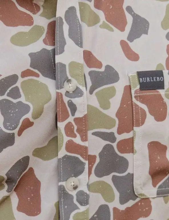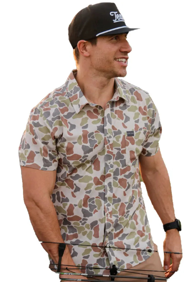 Burlebo Men's Performance Short Sleeve Button Up Shirt (Driftwood Camo)