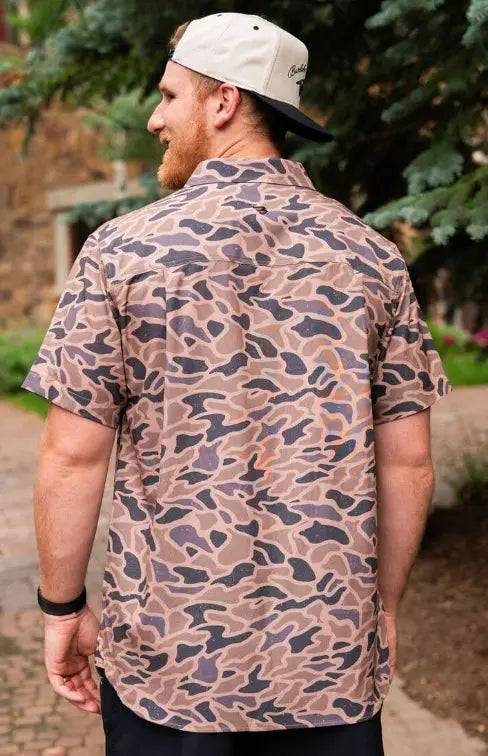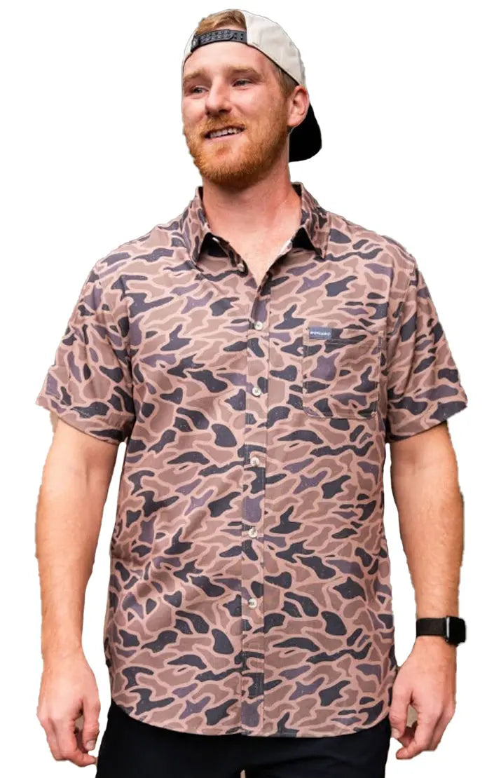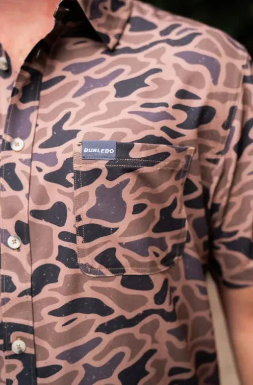 Burlebo Men's Performance Short Sleeve Button Up Shirt (Gauge Camo)