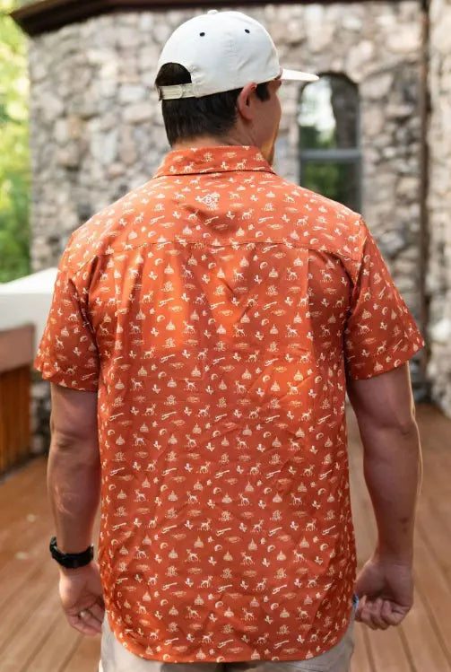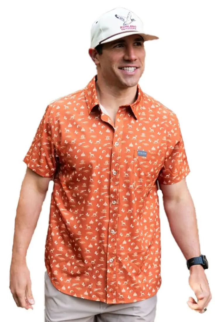 Burlebo Men's Performance Short Sleeve Button Up Shirt (Lone Star State Orange)