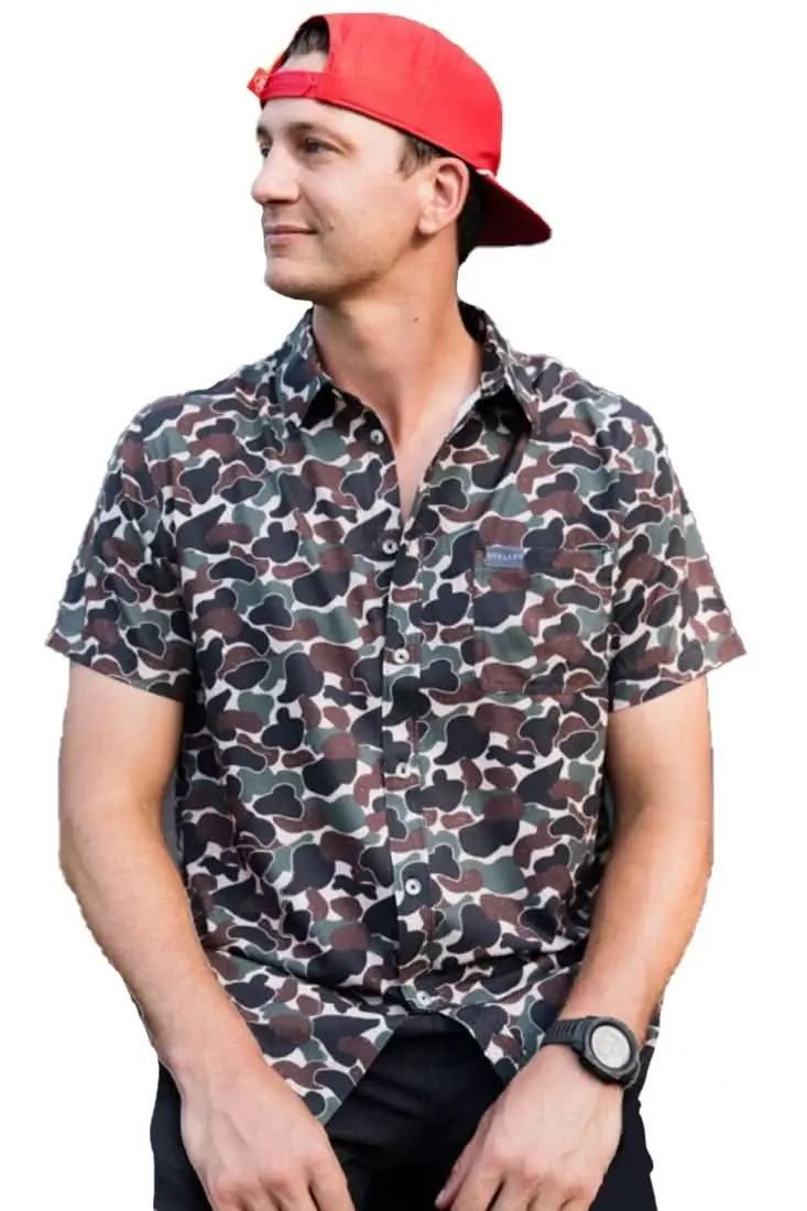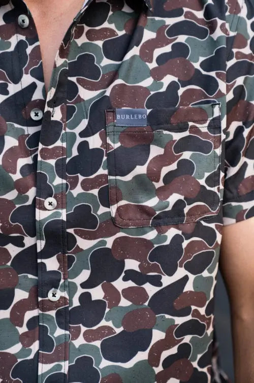 Burlebo Men's Performance Short Sleeve Button Up Shirt (Throwback Camo)