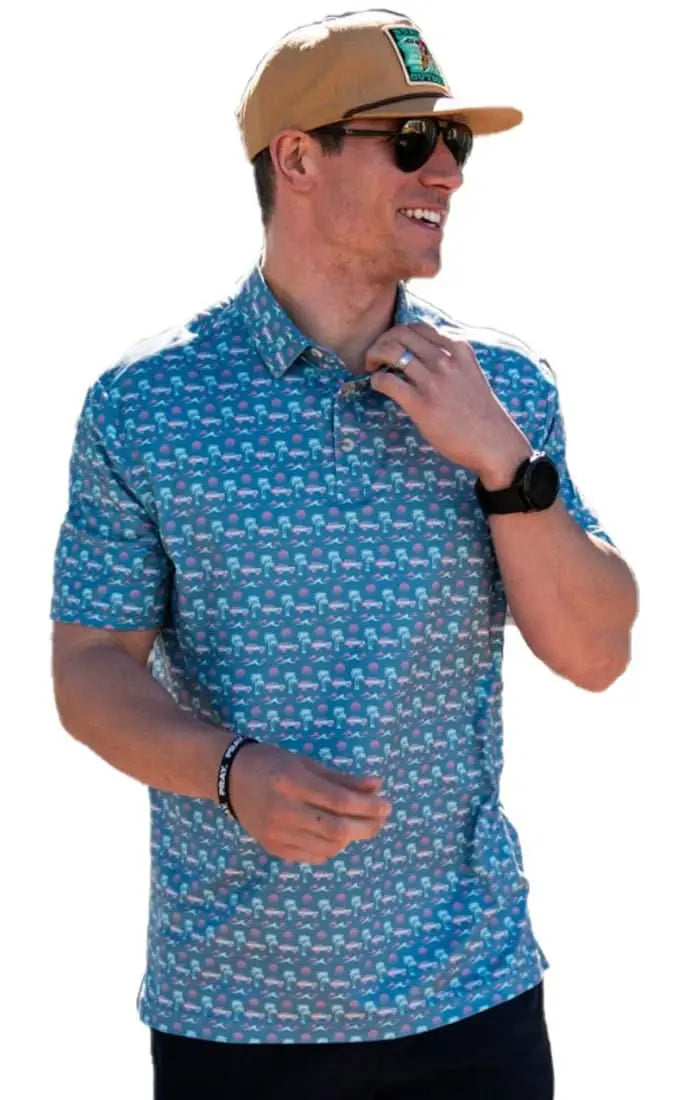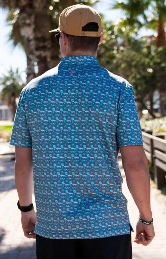 Burlebo Men's Performance Short Sleeve Polo Golf Shirt (Beach Cruise)