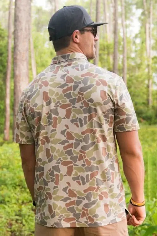 Burlebo Men's Performance Short Sleeve Polo Golf Shirt (Driftwood Camo)