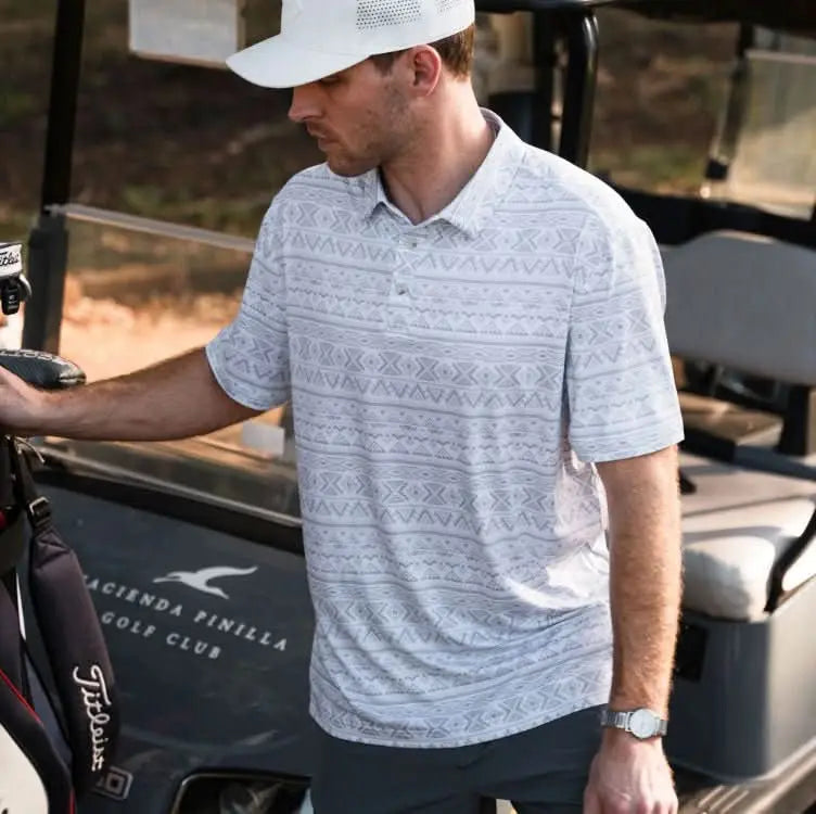 Burlebo Men's Performance Short Sleeve Polo Golf Shirt (Grey Aztec)