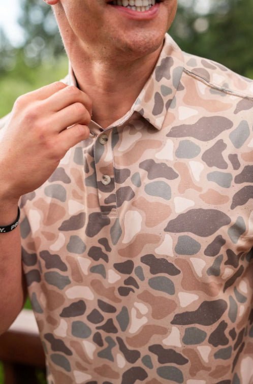Burlebo Men's Performance Short Sleeve Polo Golf Shirt (Pintail Camo)