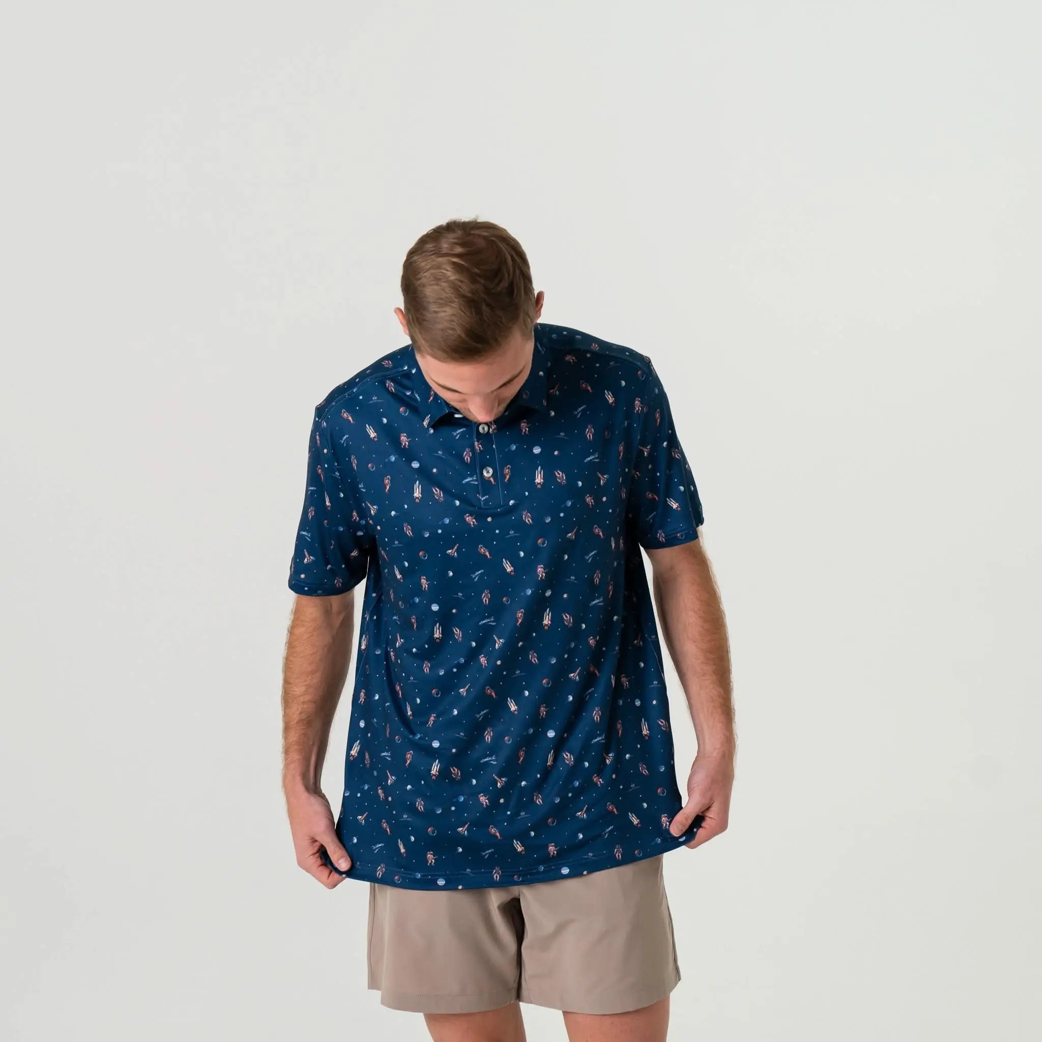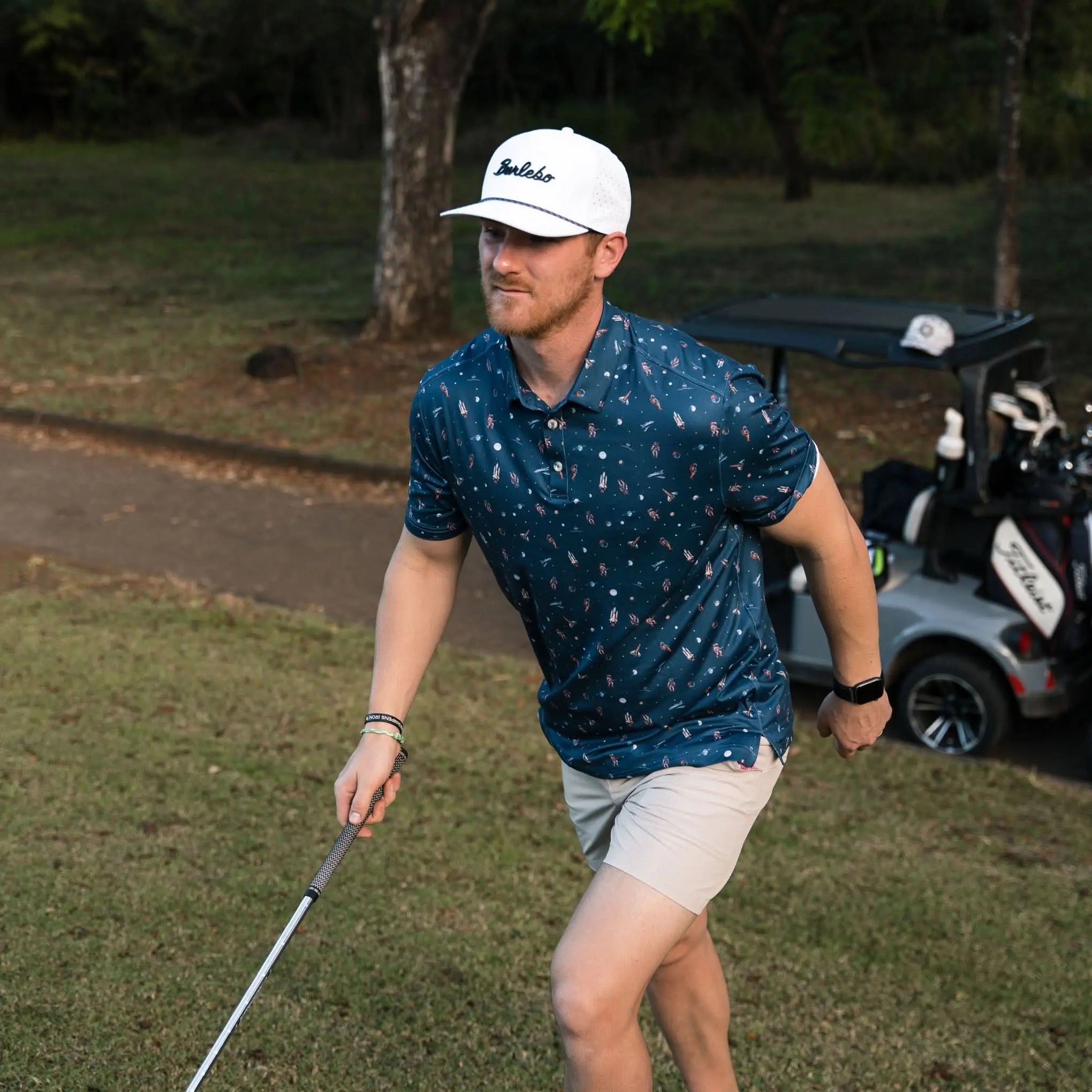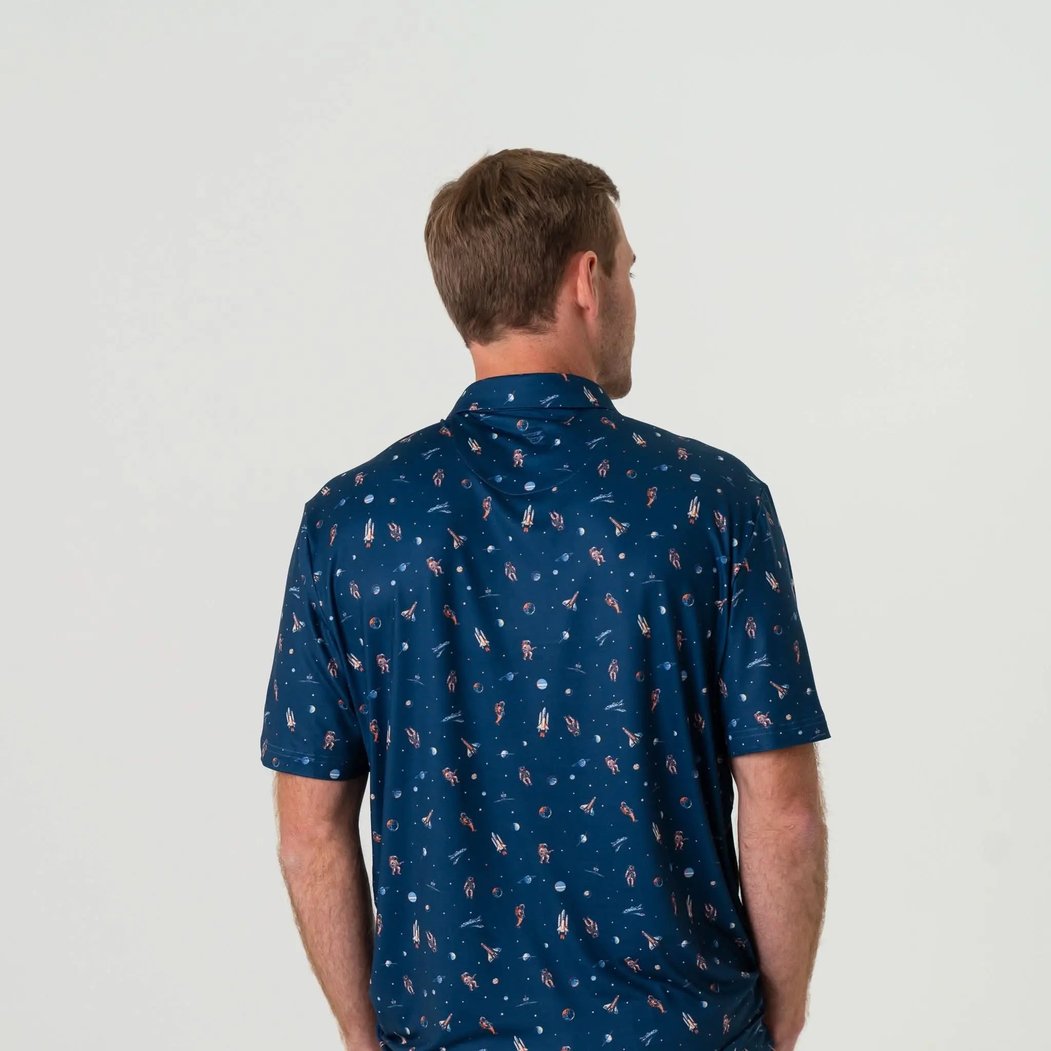 Burlebo Men's Performance Short Sleeve Polo Golf Shirt (To The Moon)