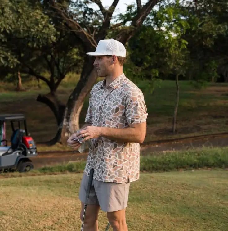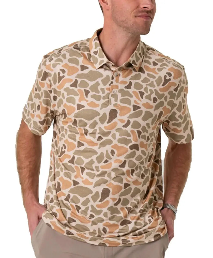 Burlebo Men's Performance Short Sleeve Polo Golf Shirt (Venado Camo)