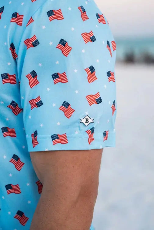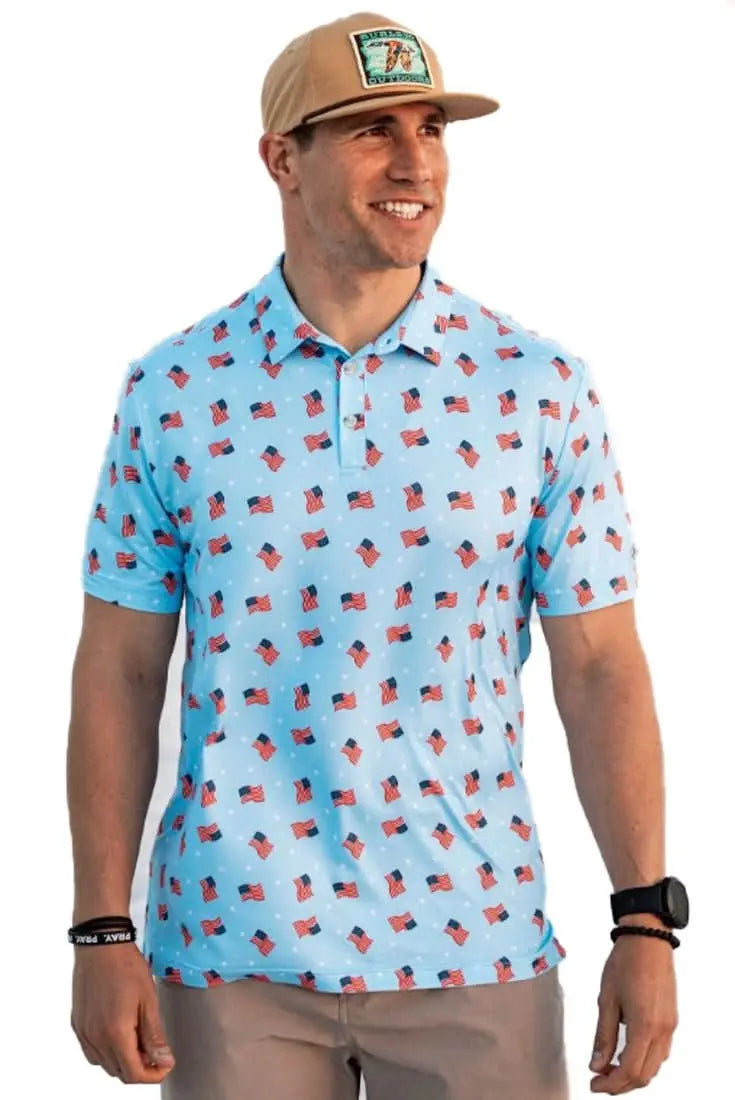 Burlebo Men's Performance Short Sleeve Polo Golf Shirt (Waving USA Flag)