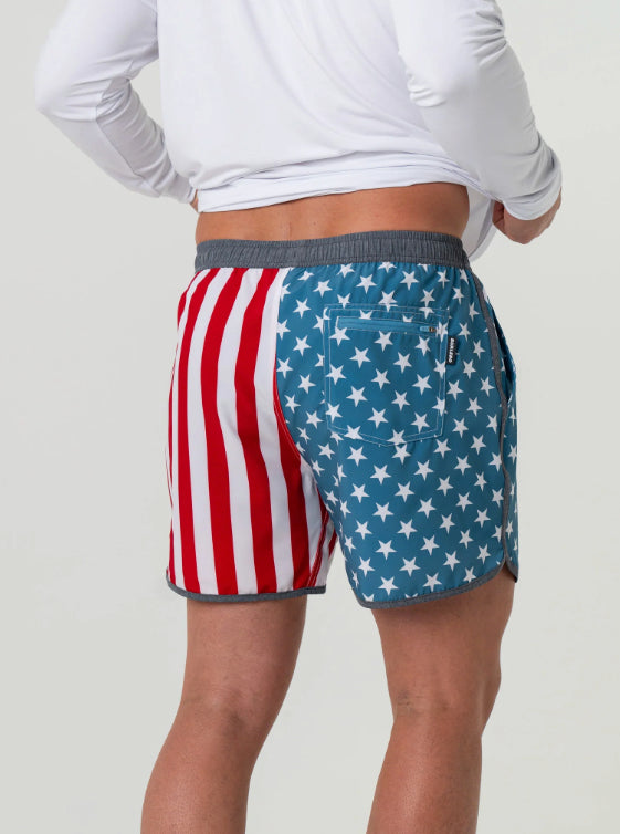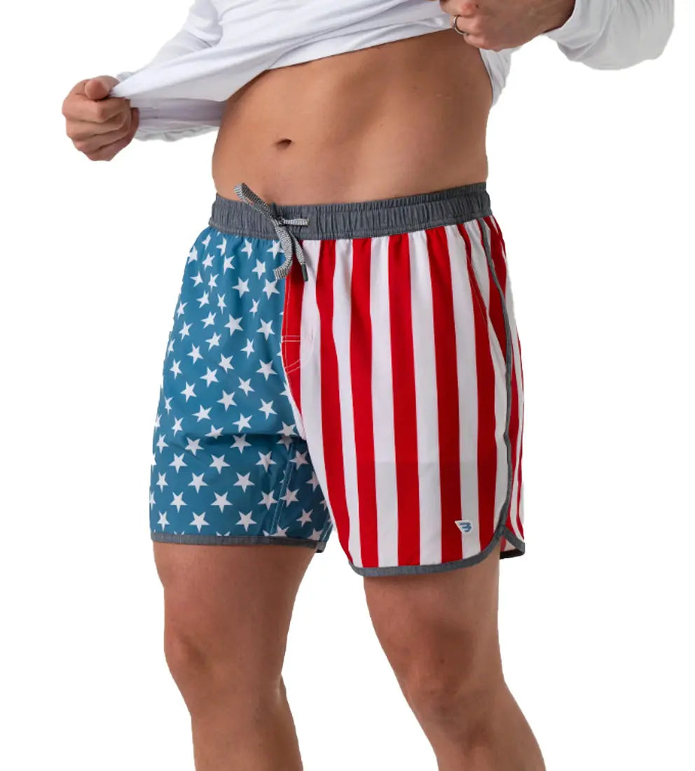 Make a splash at the beach or pool in these stylish swim trunks! Featuring a compression liner rather than a typical mesh netting for ultimate comfort and support, these trunks are perfect for all your aquatic adventures. The quick drying, sweat resisting, and four-way stretch material ensures you stay dry and comfortable all day long. The elastic waistband with drawstring cord allows for a customizable fit, while the trendy design will have you looking cool and confident.
