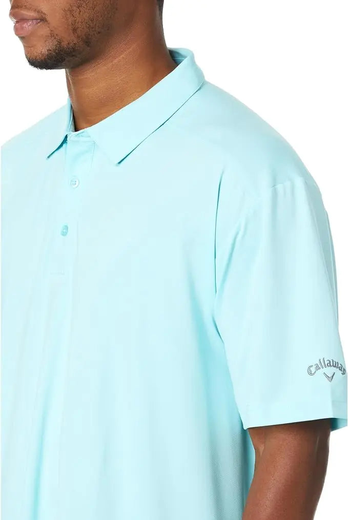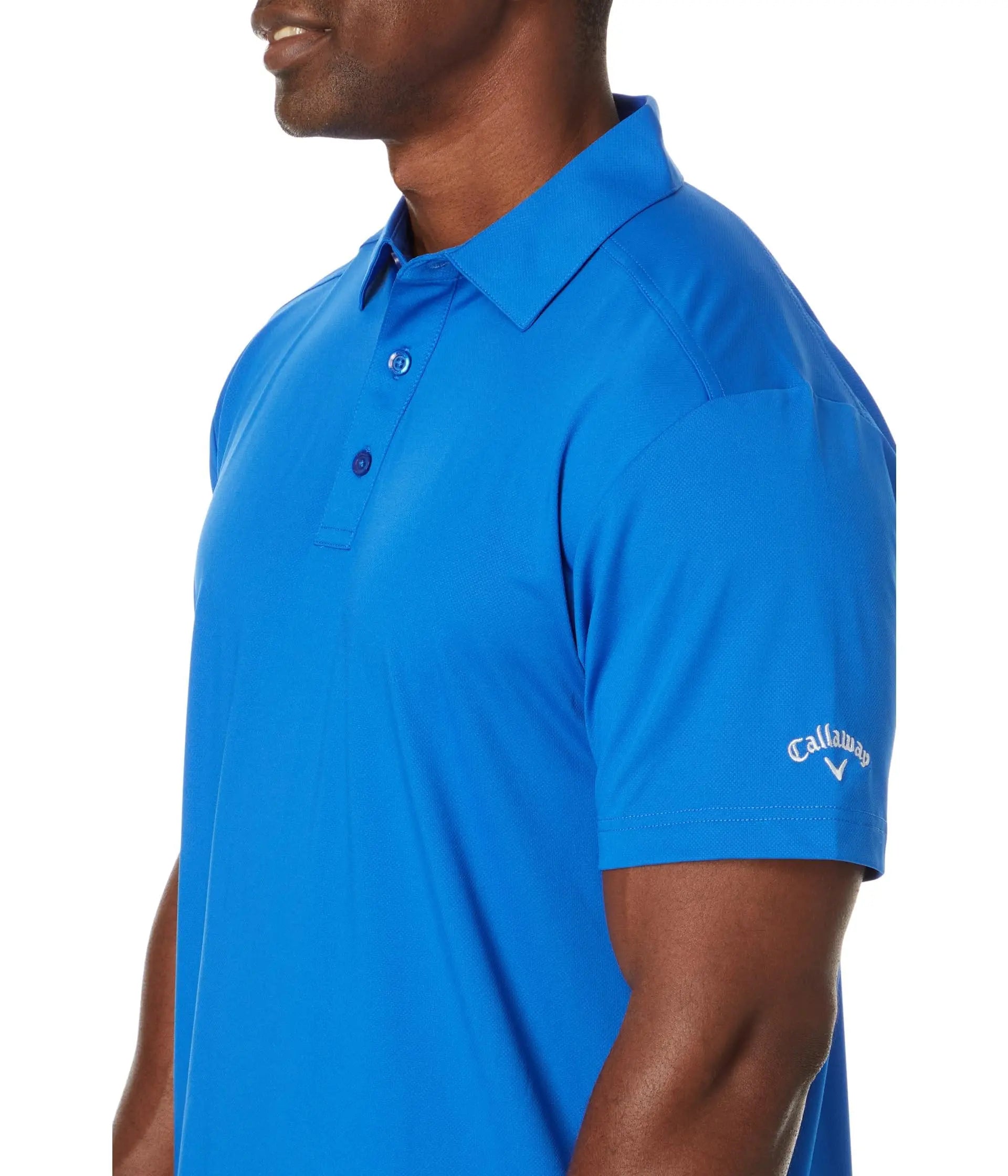 Feel the difference with our men's micro hex golf polo, where performance meets comfort seamlessly. Crafted from a polyester-spandex blend, this solid short sleeve shirt not only moves with you but also features a micro hexagonal pattern for a subtly textured and stylish look. Experience the classic comfort of Callaway's Standard Collection, offering roomier fits for all body types, with the added convenience of big & tall sizes for comfortable coverage and unrestricted motion. With UPF 50 sunblock technology, this golf shirt provides superior protection against harmful UV rays, ensuring you stay shielded during sunny outdoor days. And the best part? Effortless maintenance – this performance polo shirt can be machine washed and dried without the need for line or flat drying. Stay cool, look sharp, and play your best with our modern short sleeve golf shirt designed for game-time performance.