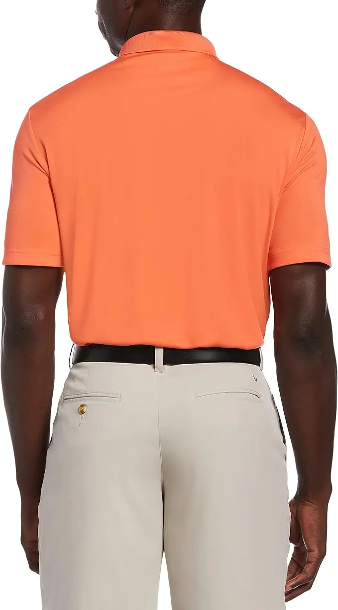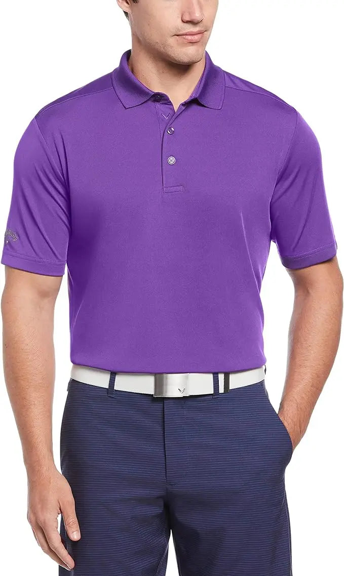 - Callaway men's short sleeve golf polo with three-button placket