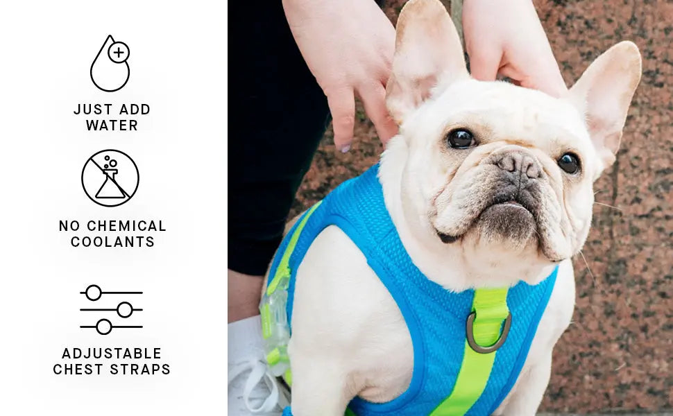 - Chill Seeker - Do you want to bring your dog on an outdoor adventure but are worried about the heat? That’s why we came up with the Chill Seeker! Our cooling dog vest contains water retaining fabric and as the sun comes in contact with the held moisture, the water will evaporate. This ensures your dog will be kept cool on hot days; whether you’re on a bike ride or taking a fun beach day! Just add water, wring, put over your dog’s head, adjust the buckle, and you’re ready to cool down!