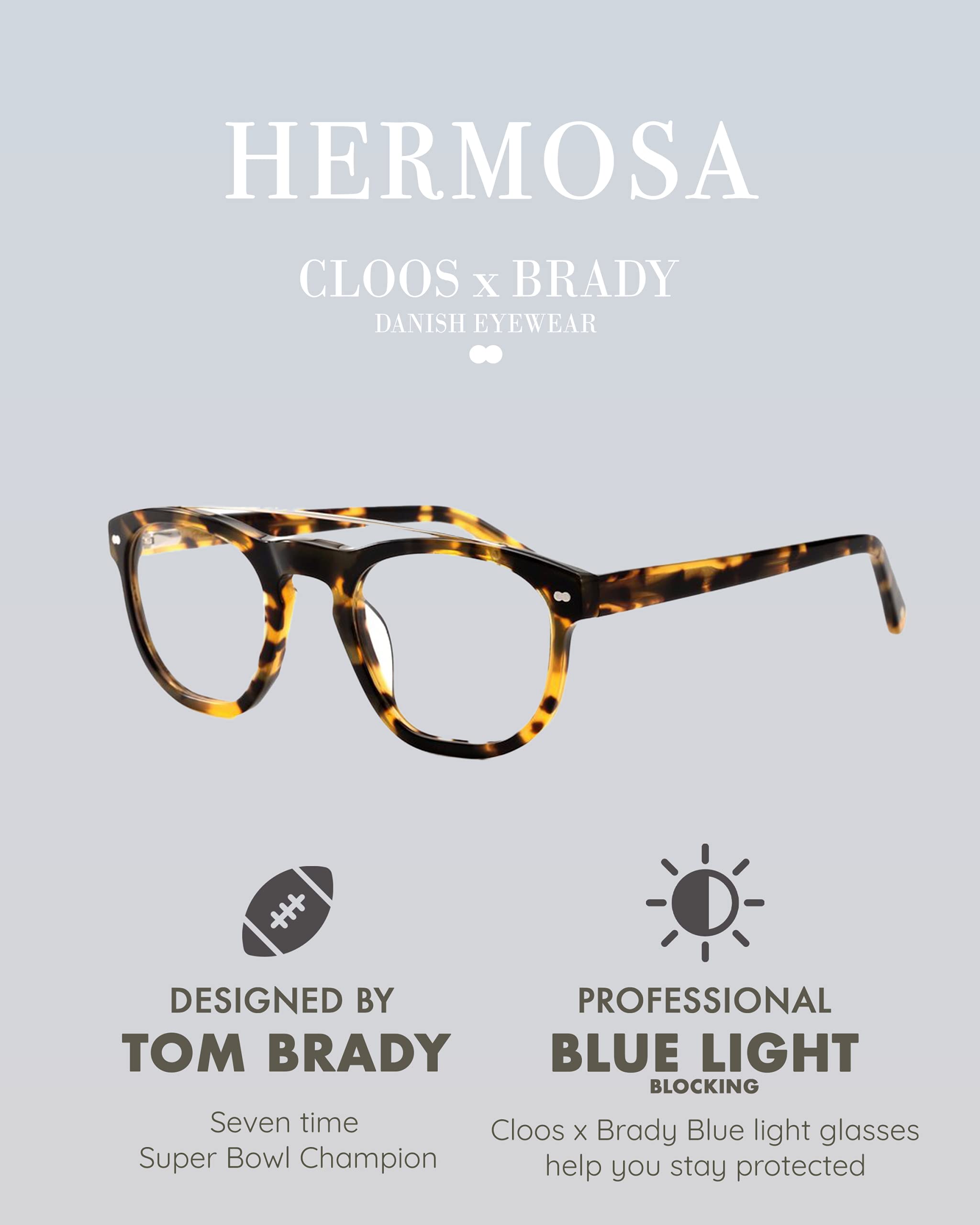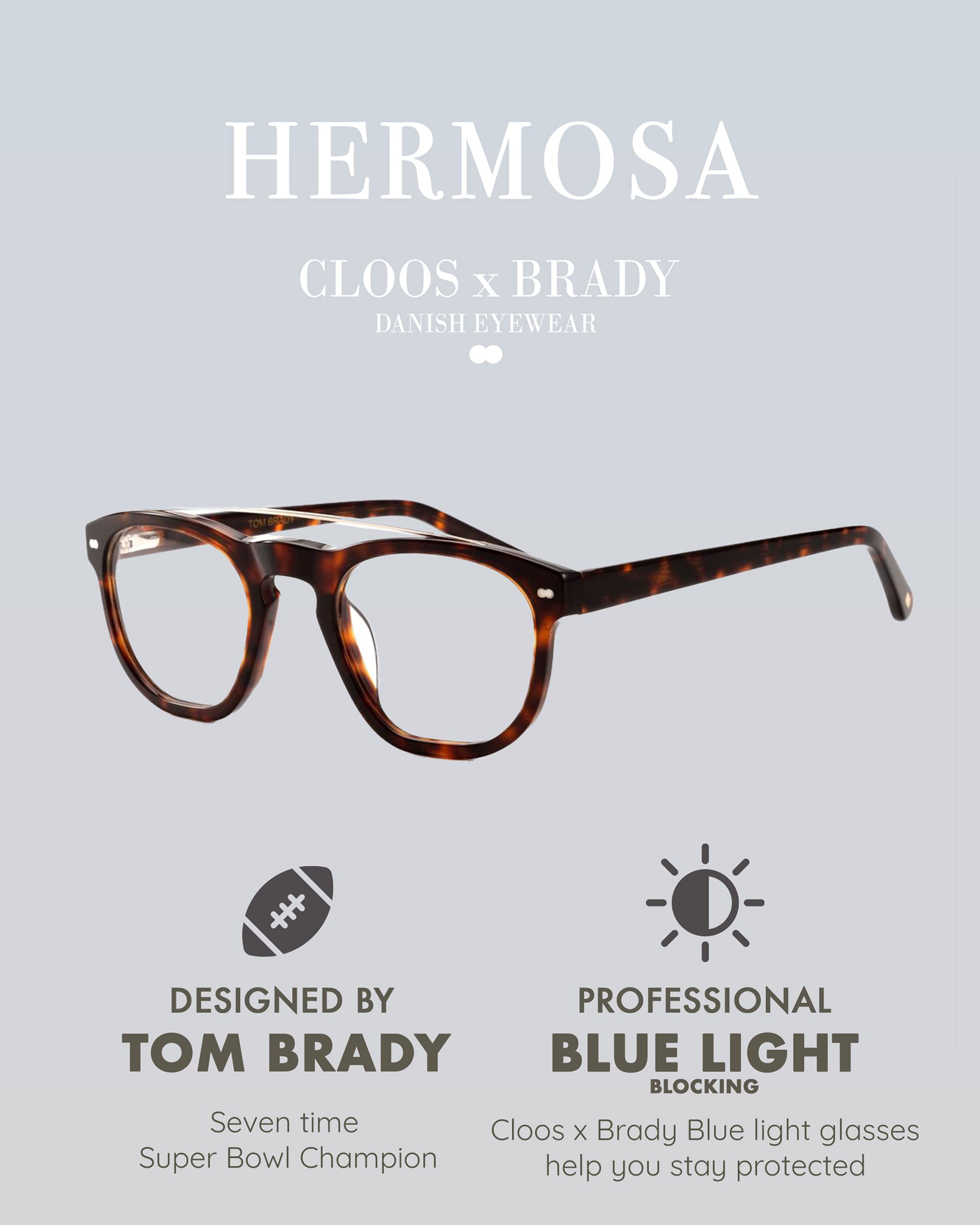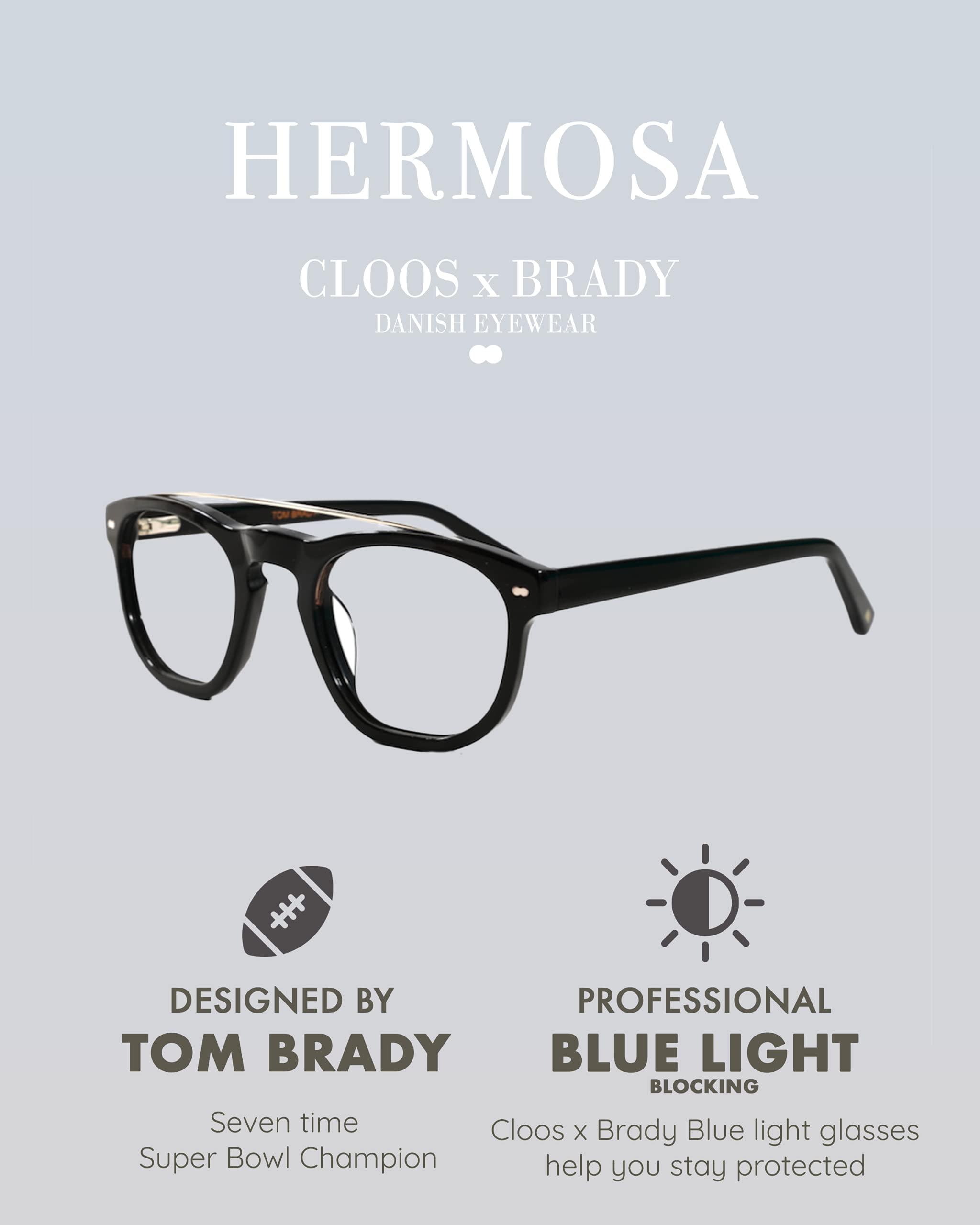 - TOM BRADY COLLAB - Tom Brady winning silverware again meant these new Blue Light glasses had to feature silver elements. Hence, the elegant silver bar that really makes the Hermosa frames stand out
