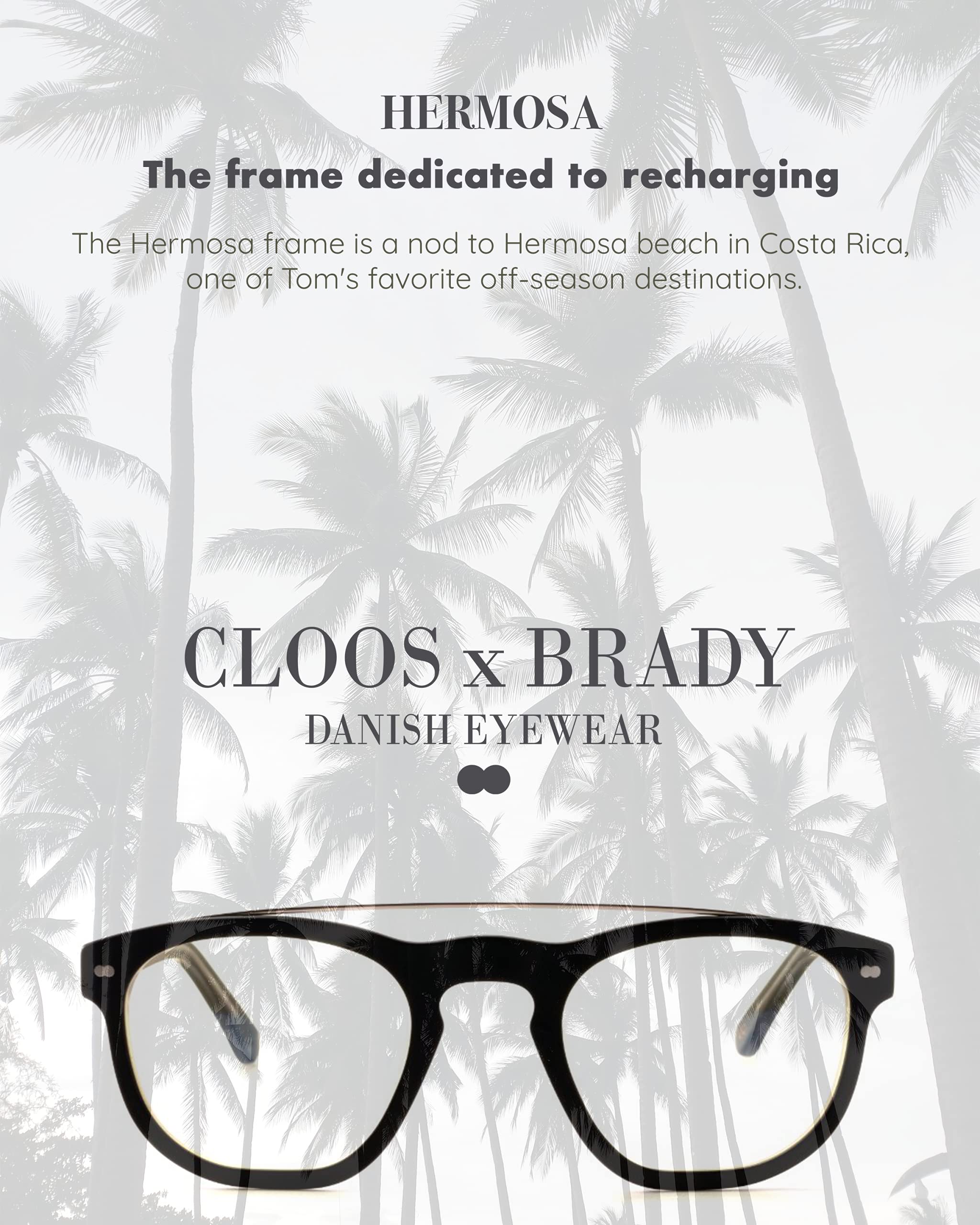 Tom Brady winning silverware again this season meant the product had to feature silver elements. Hence, we decided to incorporate a silver bar in the Hermosa frame. A design that features subtle soft squared edges alongside biodegradable acetate, staying true to the timeless, sustainable and minimalistic characteristics that define Christopher Cloos as a brand.