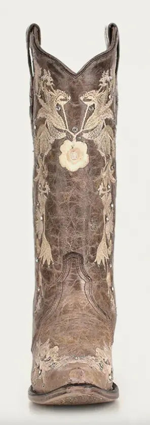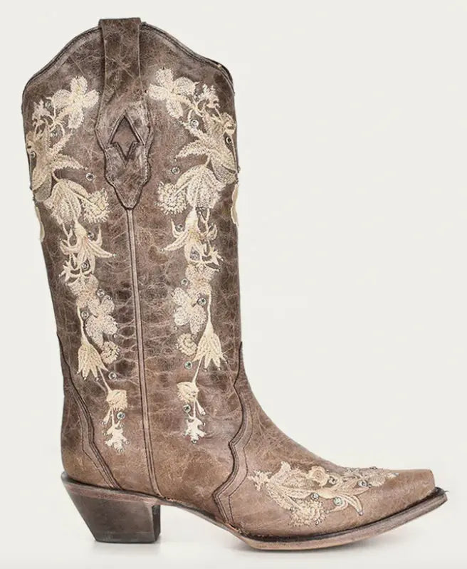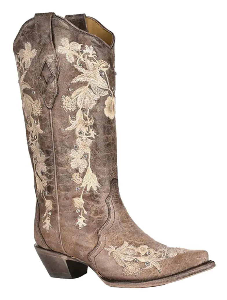 The ivory stitching compliments the natural brown tone of the 13-inch shaft, this feminine style will steal the spotlight on the dancefloor, out in the town, or at a bridal event.
