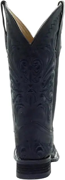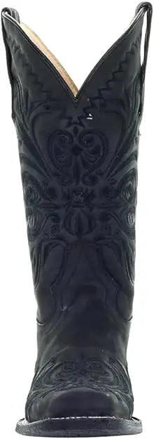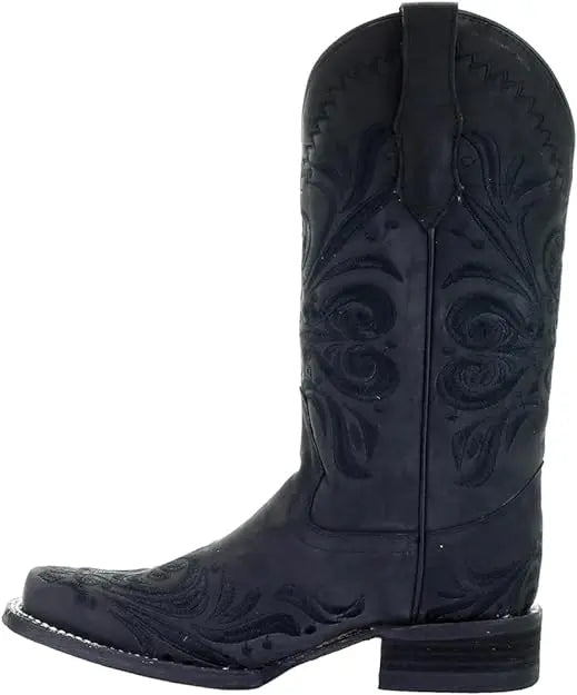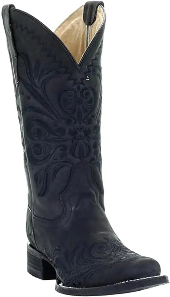 Corral Women's L5464 All Black Tooled-Inlay Square Toe Western Boots
