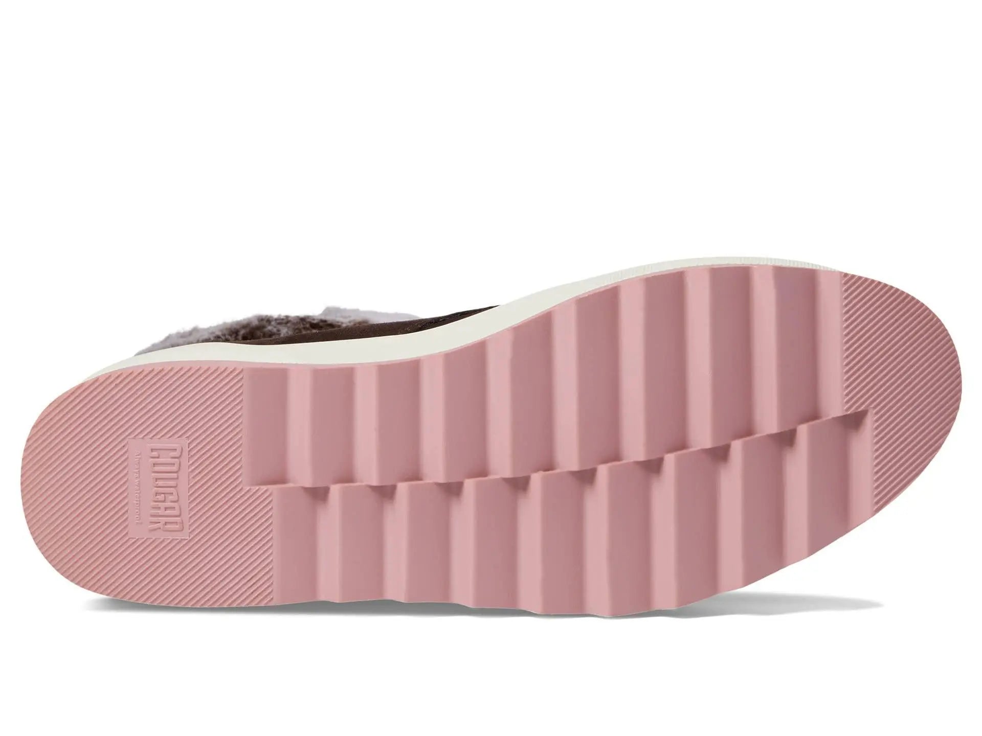 Mid-calf slip on boot with faux fur collar. Rounded toe. Contrast front-lace closure with ankle wrap. Lightweight Thermoplastic rubber outsole with contrasting Polyurethane cushion midsole.